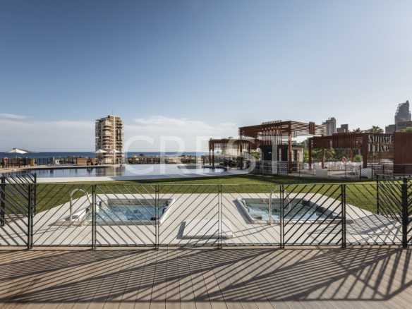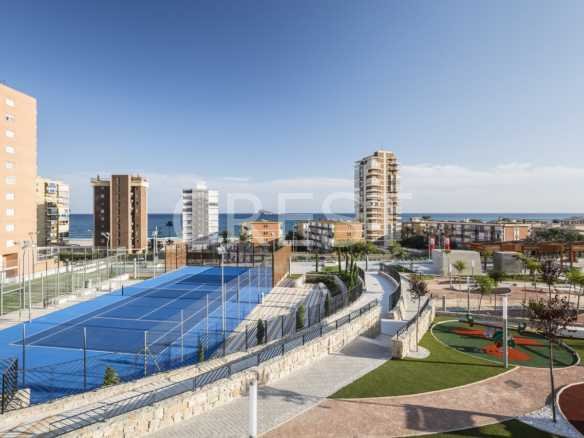 Located in the Cala de Benidorm, the quietest and most demanded area, is this newly built apartment, privileged views of the sea and the most modern and complete urbanization of the entire city. 13,000 sqm of common areas divided into 3 swimming pools, 3 Jacuzzis, chill out lounge areas, 2 bar bars, one of them integrated into the pool, sauna, heated swimming pool adapted to swimming, paddle tennis, tennis, Wi-Fi rooms and reading, plus a small movie theater.