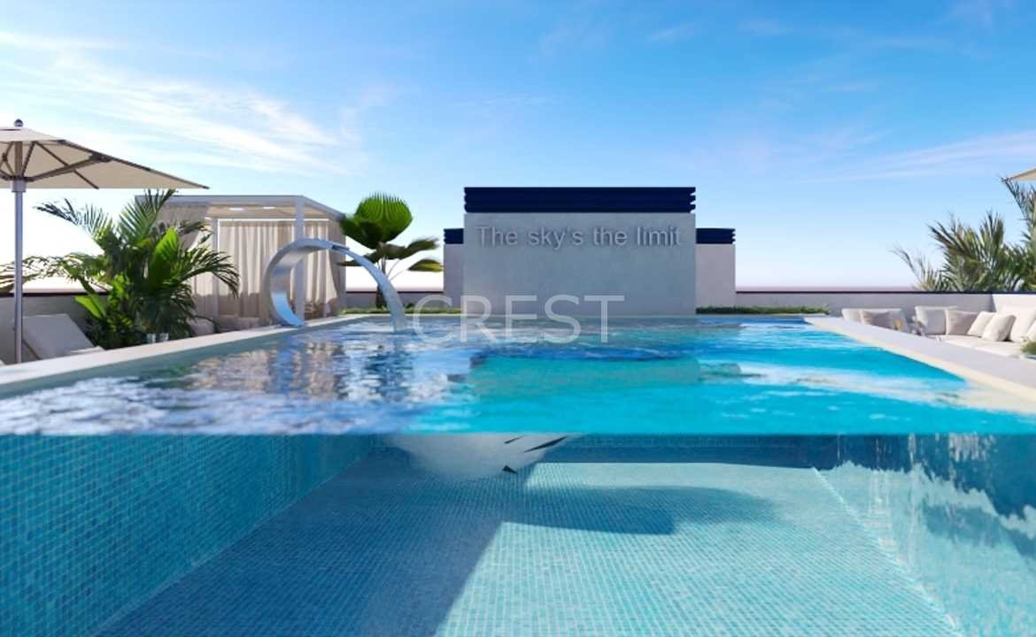 The project offers its residents an oasis of wellbeing and relaxation on the solarium terrace with a large 24m2 swimming pool, waterfall, barbecue area and chill out area.