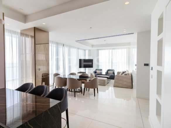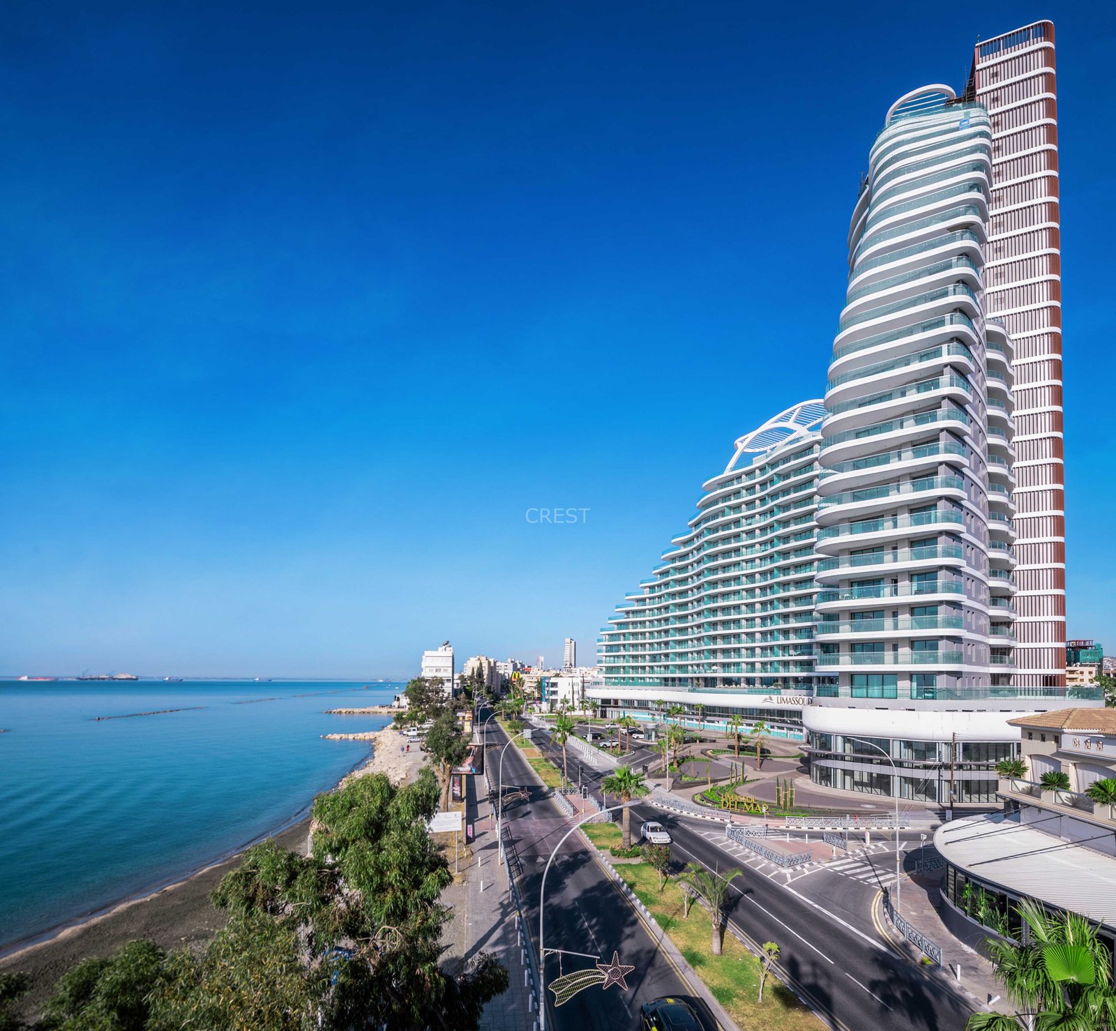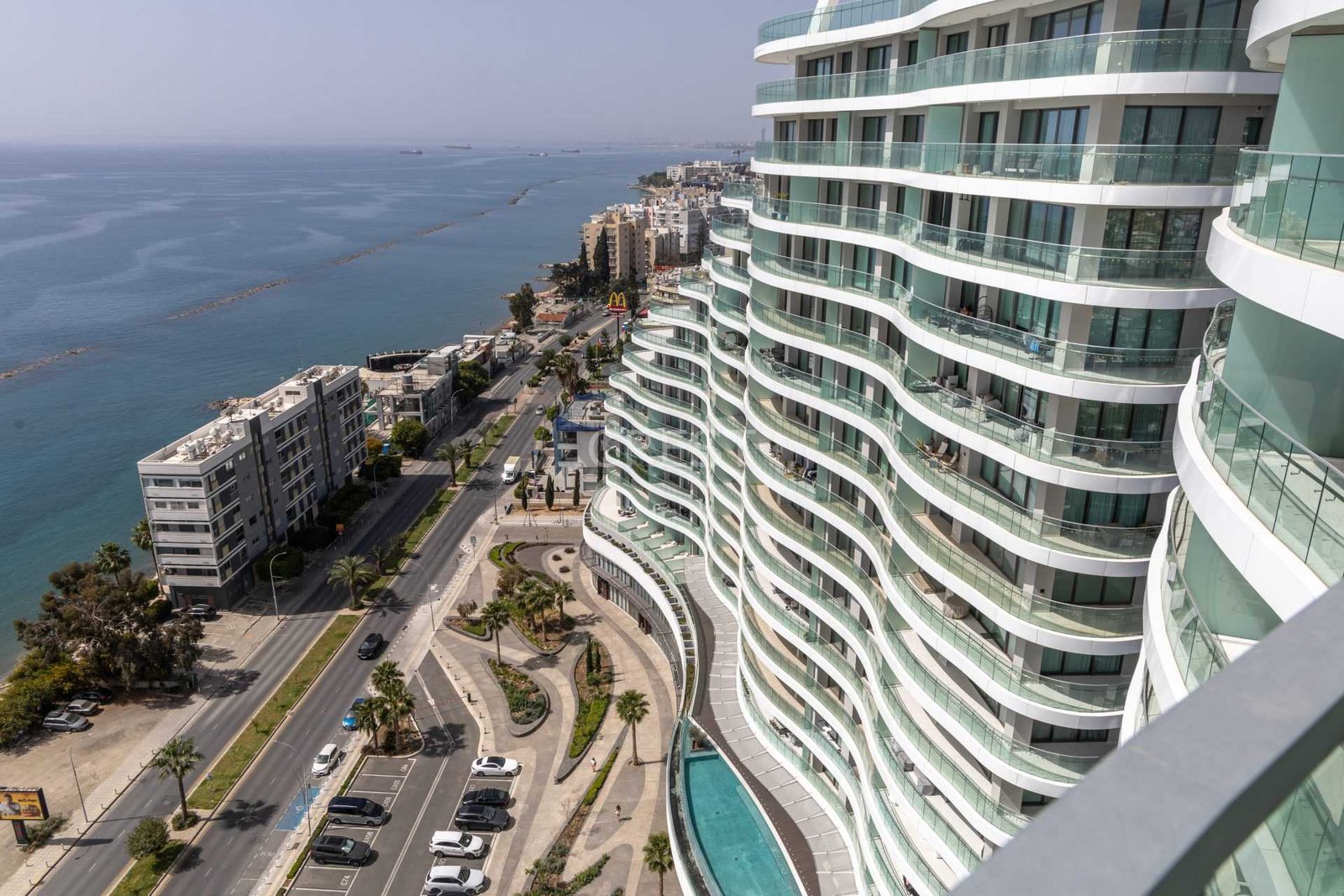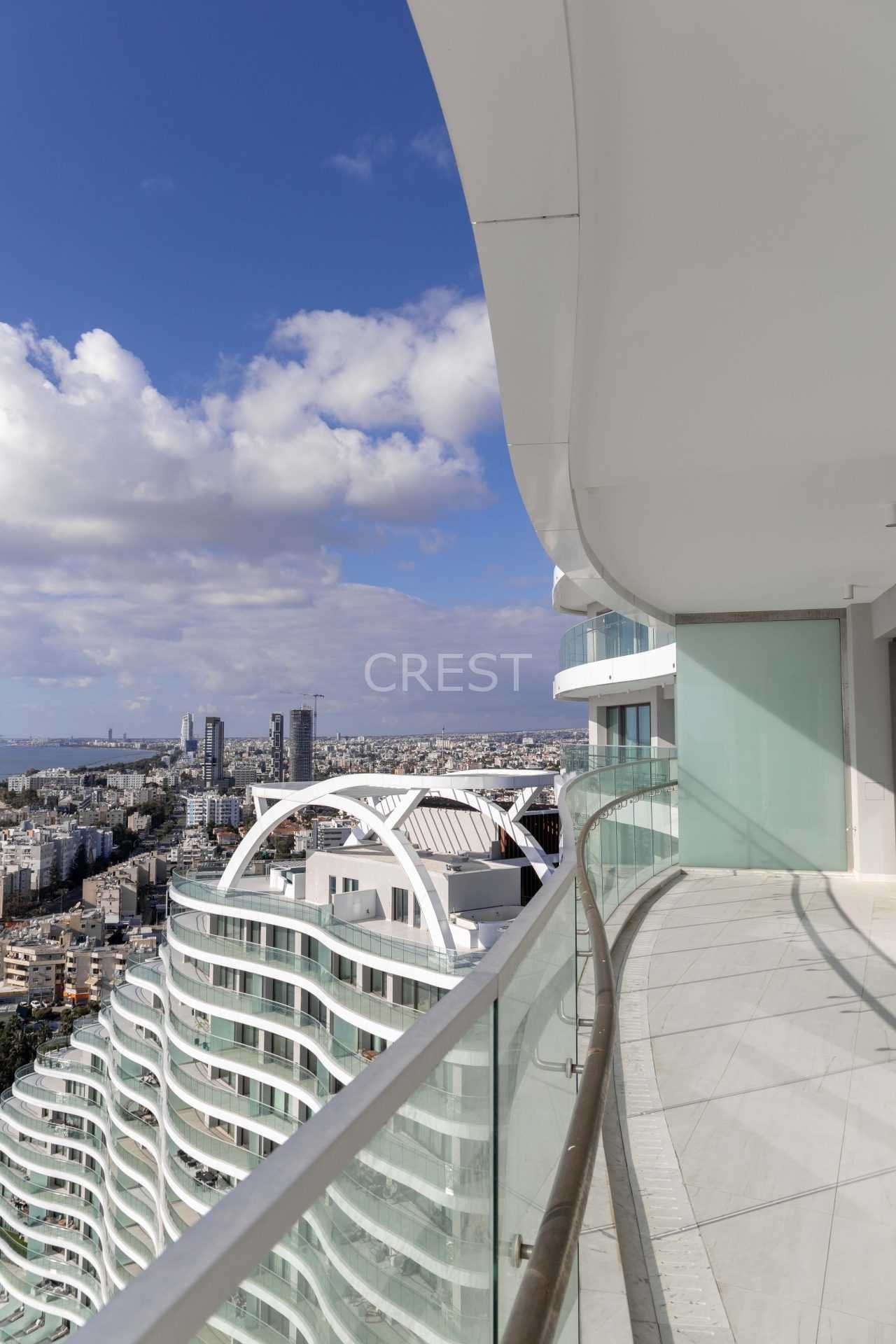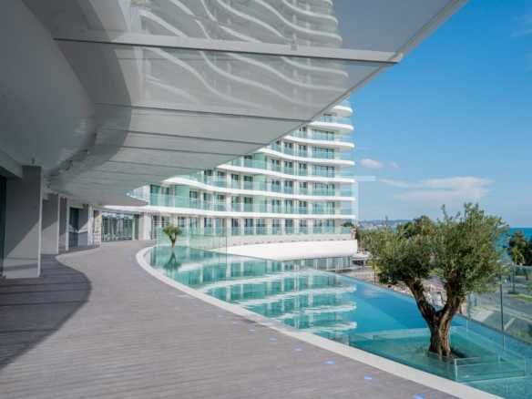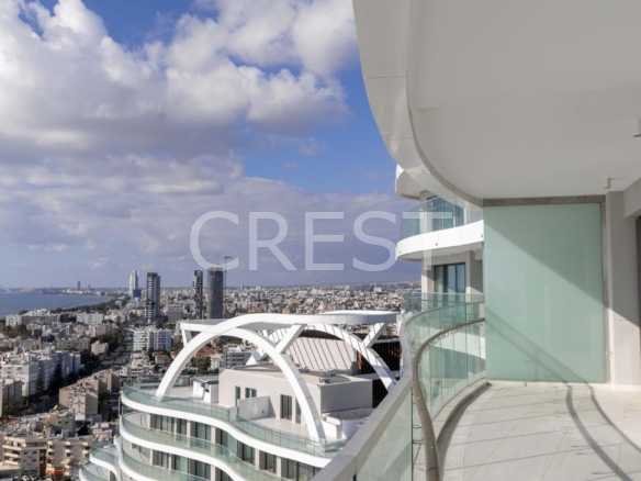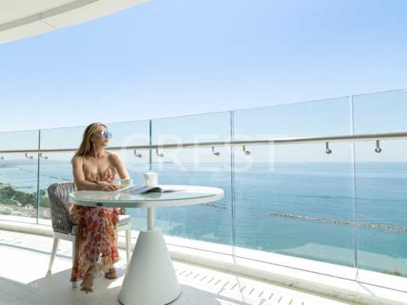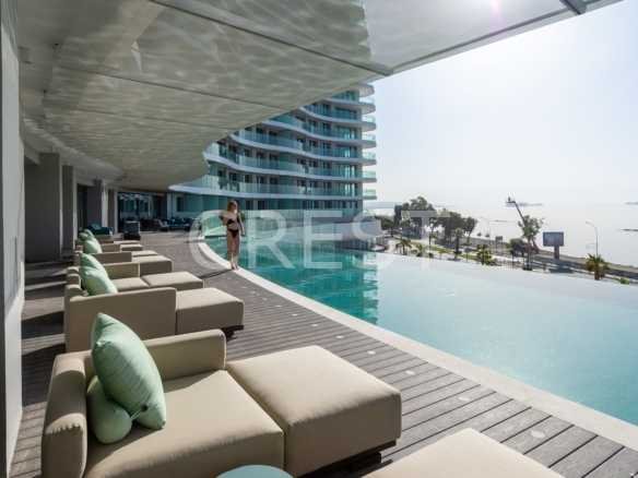 is a Seafront apartment that enjoys breathtaking views of the Mediterranean Sea at every angle. Being part of Limassol Del Mar, it expresses the island’s ‘new wave’ of architecture through its unique high-rise curvilinear design, which fully capitalises on the plot’s 170 metres long sea frontage.