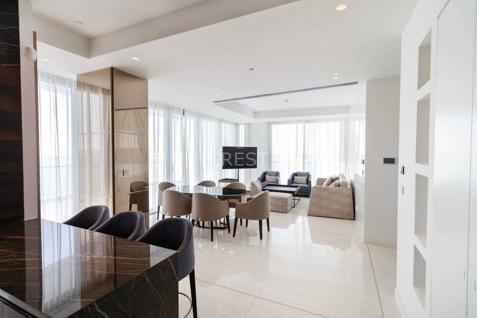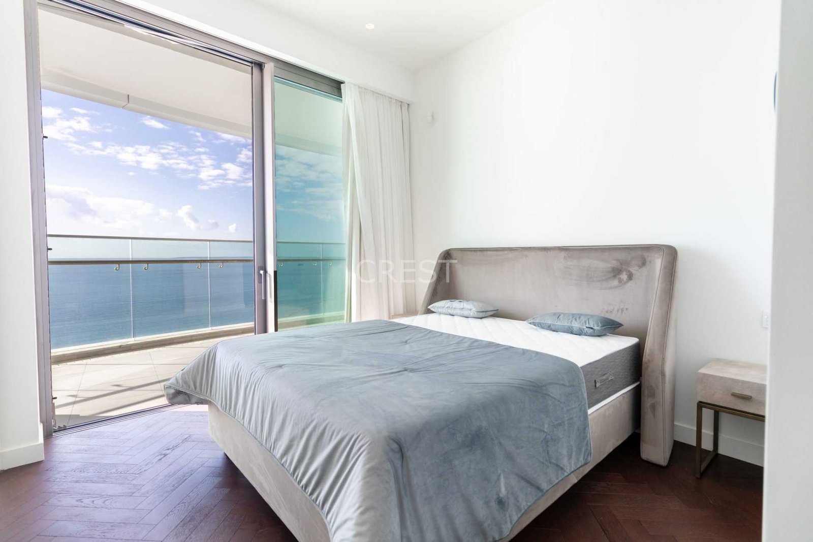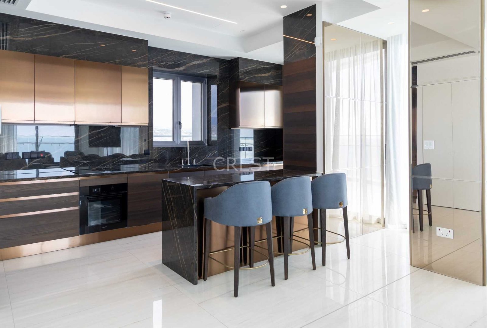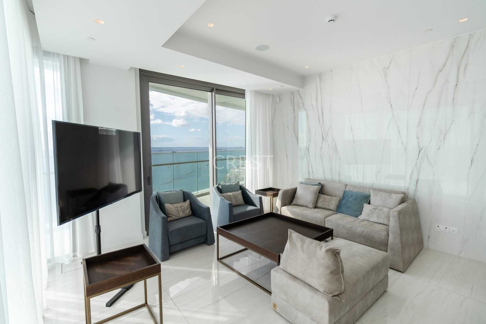 is a Seafront apartment that enjoys breathtaking views of the Mediterranean Sea at every angle. Being part of Limassol Del Mar, it expresses the island’s ‘new wave’ of architecture through its unique high-rise curvilinear design, which fully capitalises on the plot’s 170 metres long sea frontage.