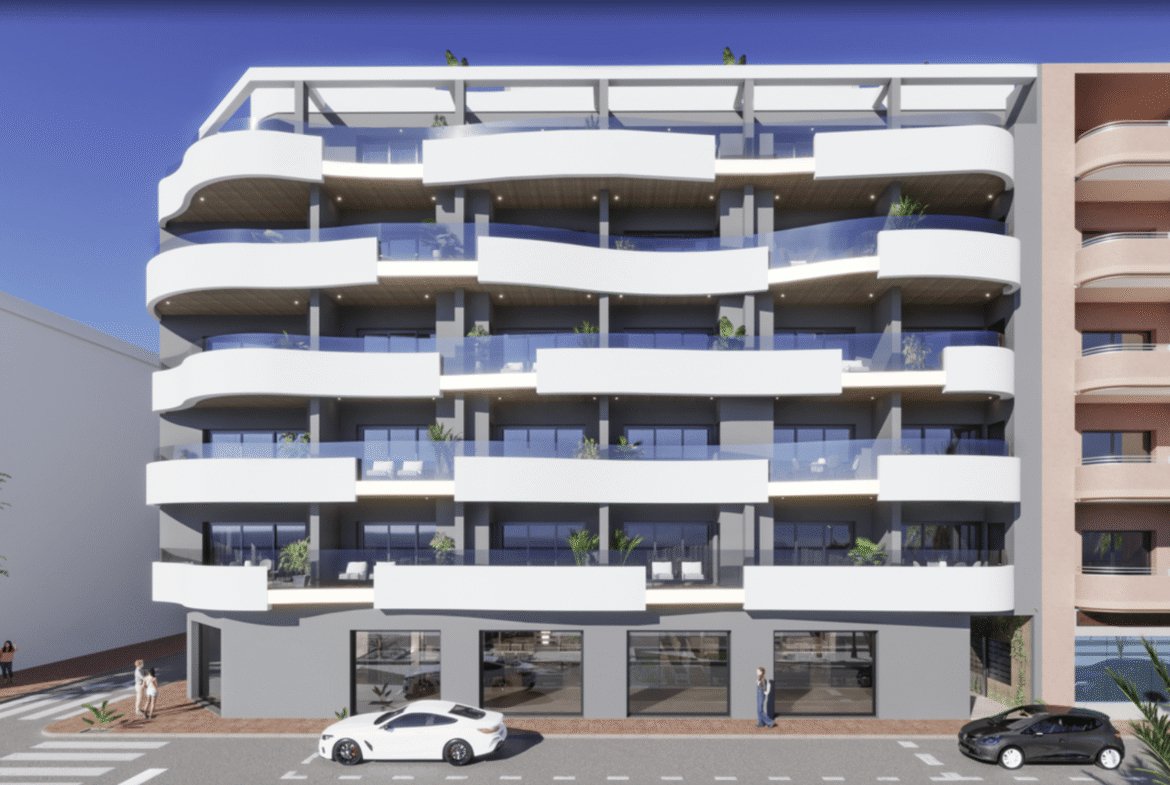 Small project with only 34 apartments ( 2 or 3 bedrooms ) about 200 metres from Los Locos beach in the beautiful coastal town of Torrevieja.
