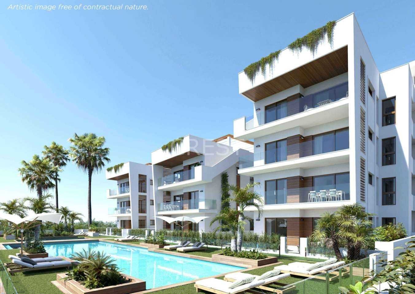 The architecture blends perfectly with large communal areas surrounded by lush greenery and a spectacular swimming pool, providing the ideal setting to relax and enjoy the sunshine. Each property includes a parking space and a storage room, ensuring maximum comfort and convenience in everyday life.