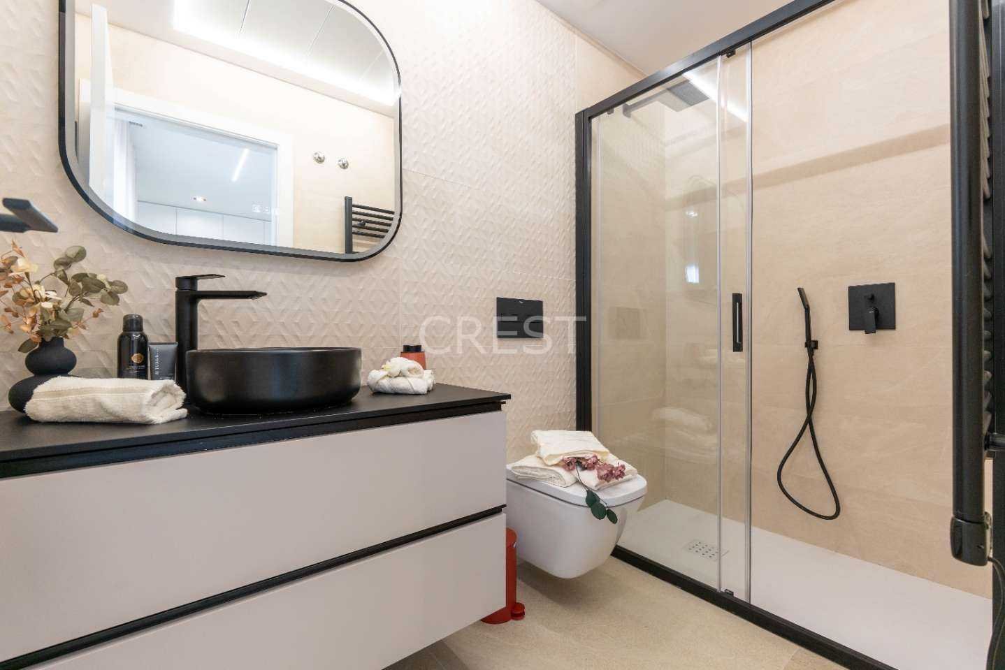 On the ground floor, you’ll enjoy a spacious and bright living room with an open, fully equipped kitchen—perfect for cozy evenings with family and friends. The large sliding doors create a seamless transition to the garden, where you’ll find a private pool and an on-site parking space. Additionally, this floor features a comfortable bedroom and a modern bathroom, ideal for guests or added convenience.
