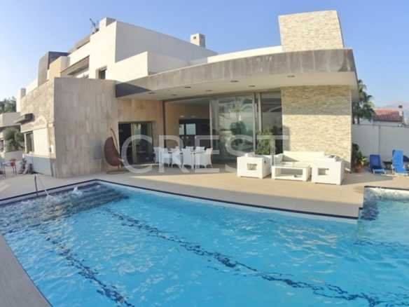 6 bedrooms (5 on suite) 6 bedrooms .dining room and lounge with fireplace access to pool area ,closed kitchen .Many terraces, laundry room ,solarium with panoramics views,elevator ready,garage underbuild of 389 m2.