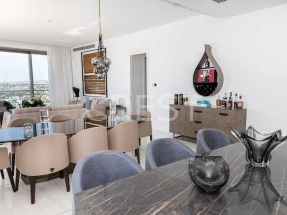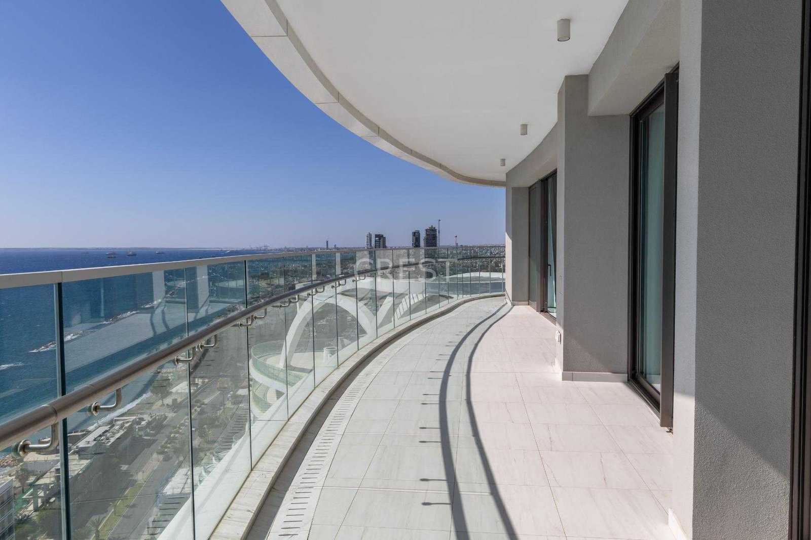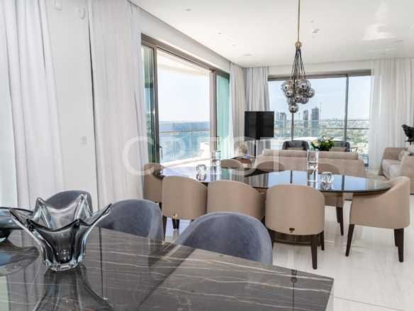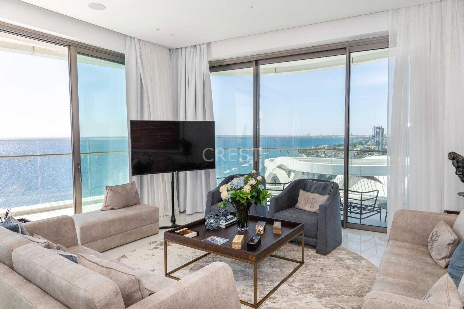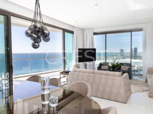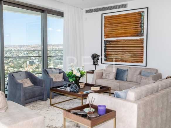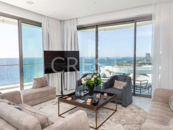 is a Seafront penthouse that enjoys breathtaking views of the Mediterranean Sea at every angle. Being part of Limassol Del Mar, it expresses the island’s ‘new wave’ of architecture through its unique high-rise curvilinear design.