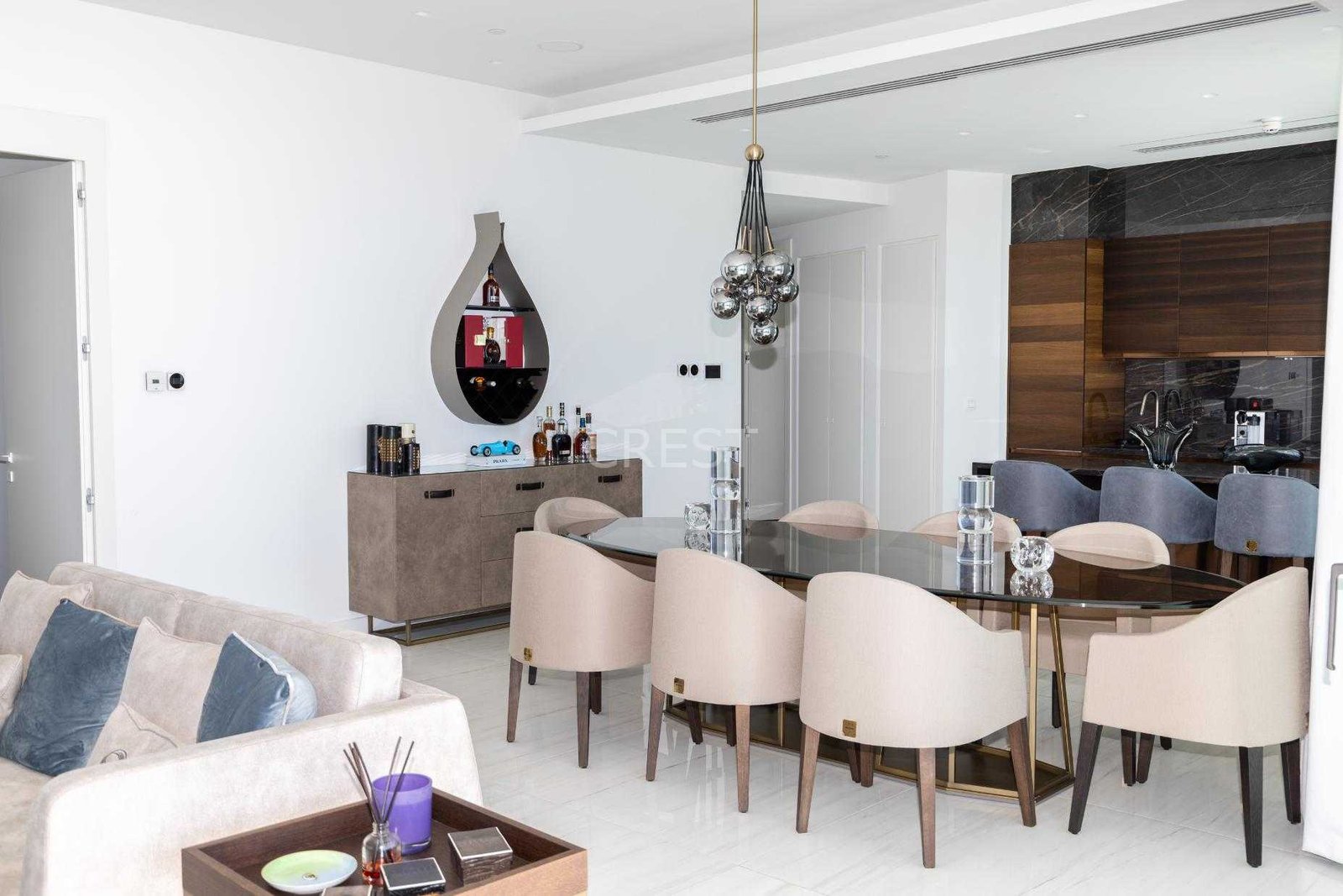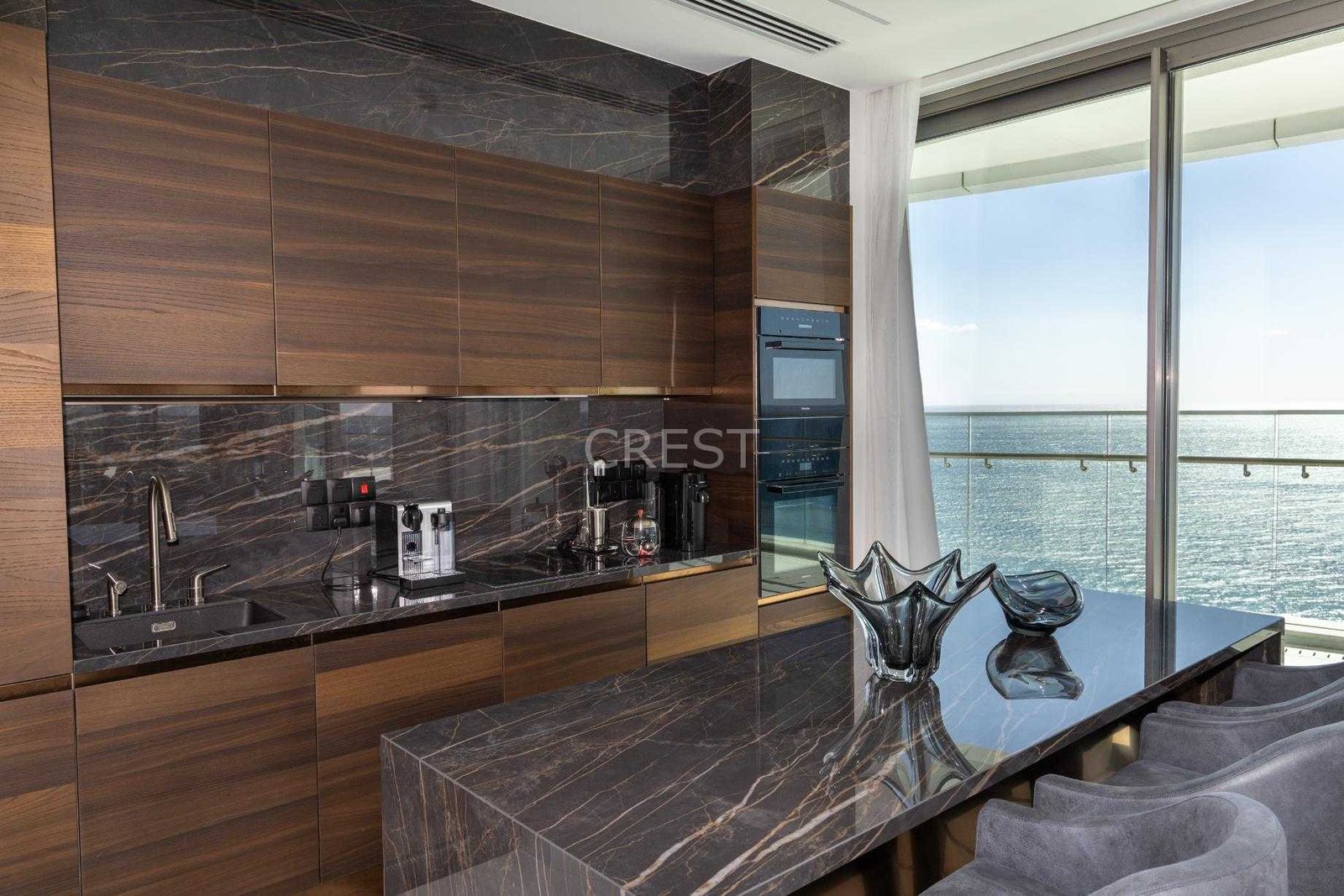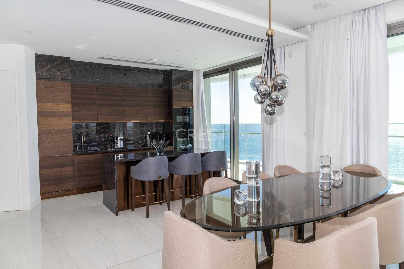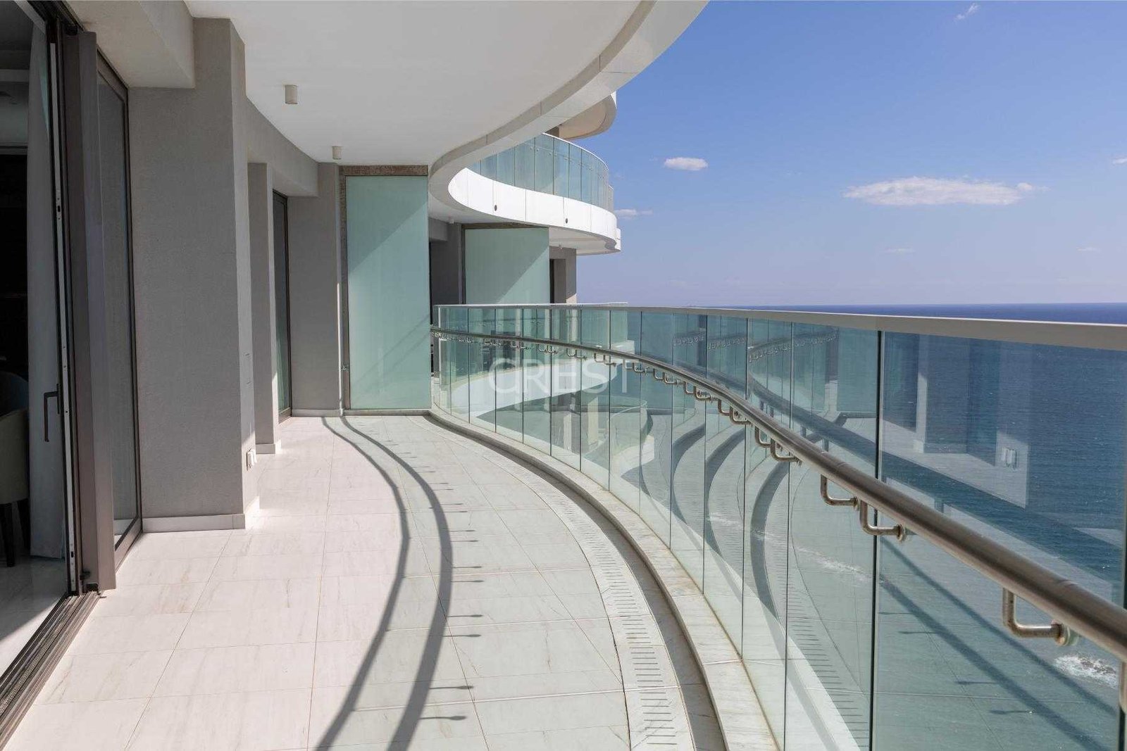 is a Seafront penthouse that enjoys breathtaking views of the Mediterranean Sea at every angle. Being part of Limassol Del Mar, it expresses the island’s ‘new wave’ of architecture through its unique high-rise curvilinear design.