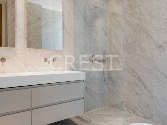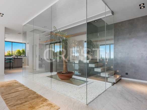 Ground floor, garden level: A master suite project with dressing room will be carried out and is included in the price. This master bedroom will offer direct access to the garden and pool area through floor to ceiling sliding windows. In addition, there is another guest bedroom en suite, laundry, storage room and a garage for three cars.