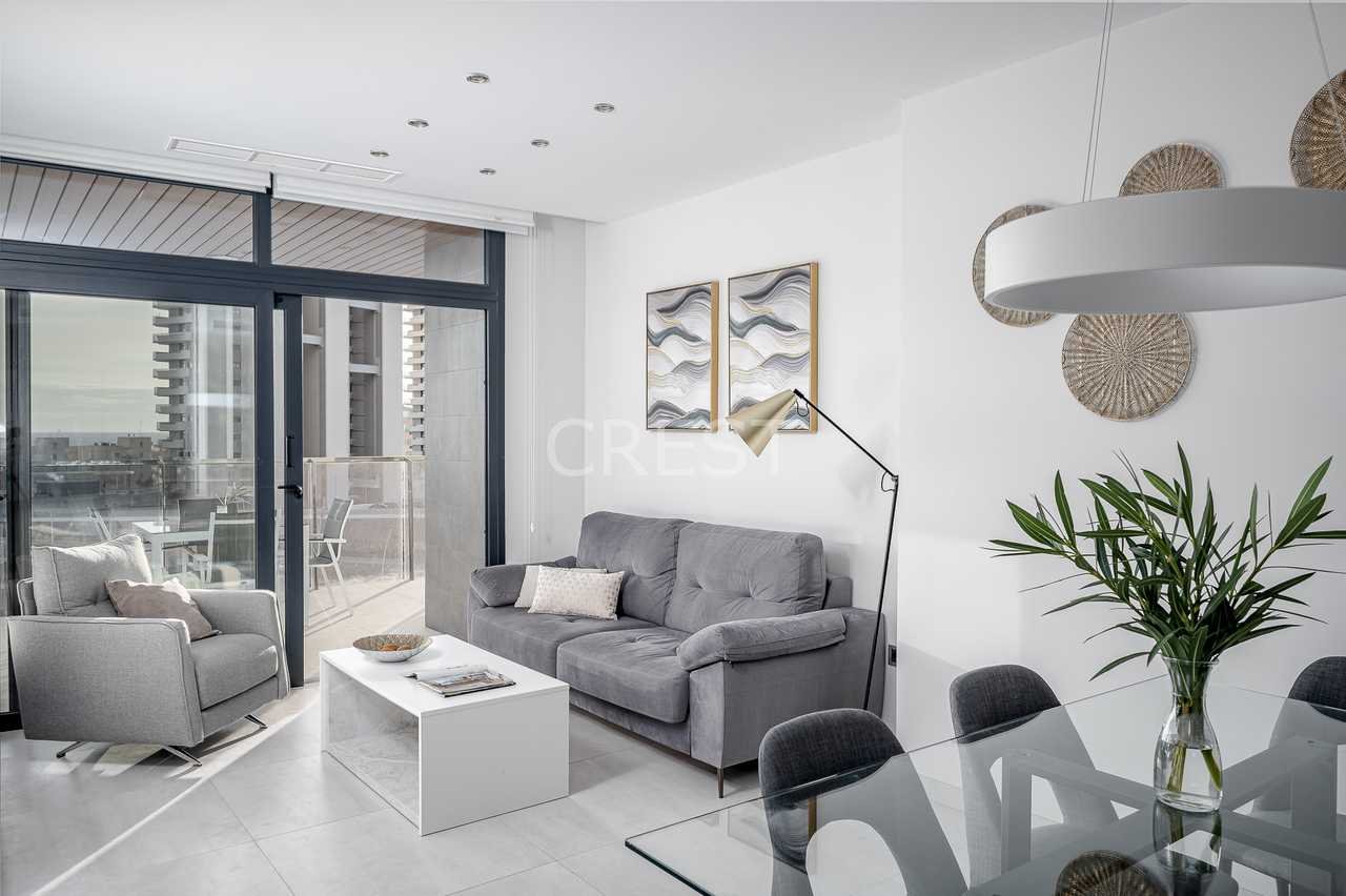 Discover this stunning 2-bedroom apartment with a spacious terrace, located in one of the most exclusive and modern developments on Poniente Beach, Benidorm.