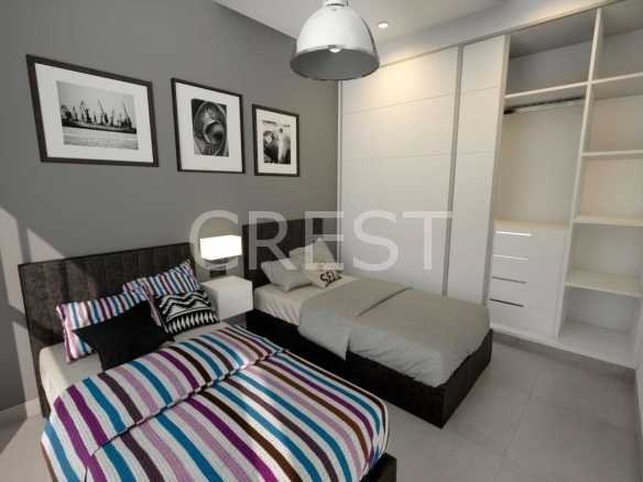 Each villa features 3 bedrooms and 2 bathrooms, with a choice of layouts: two-storey designs with a rooftop solarium, or single-level homes with a private solarium, swimming pool, and covered parking. The interiors follow an open-plan concept with a fully equipped kitchen and a bright, spacious living-dining area. All properties come with pre-installation for air conditioning to ensure year-round comfort.