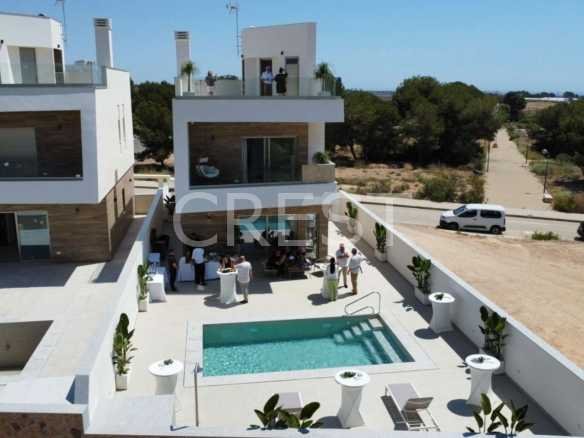 Located in a quiet and exclusive residential area near the renowned Lo Romero Golf in Pilar de la Horadada, these villas are just minutes away from the beautiful sandy beaches of the southern Costa Blanca, charming restaurants, and all necessary amenities.