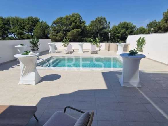 Discover these stunning detached villas with 3 bedrooms and 3 bathrooms, designed to combine comfort, elegance, and functionality. Each home offers a spacious 54 m² solarium with a fully equipped summer kitchen – the perfect place to enjoy the sun and long Mediterranean evenings with family and friends.
