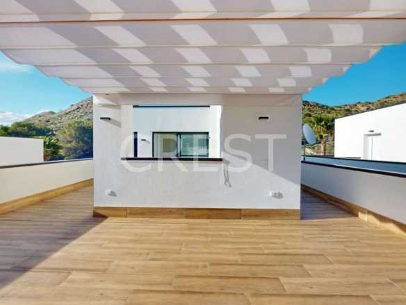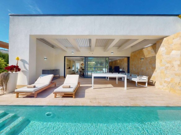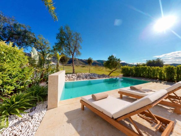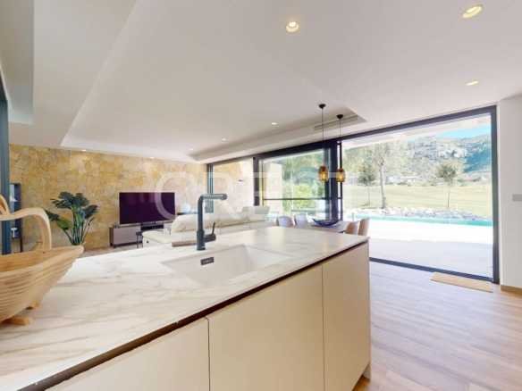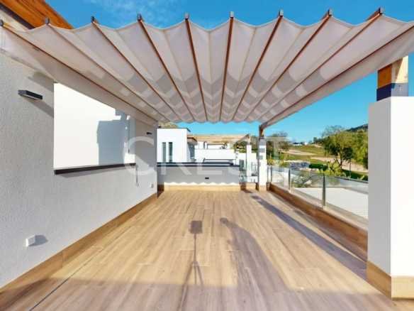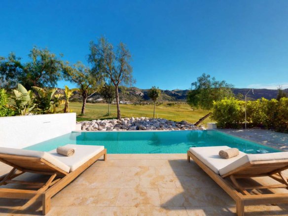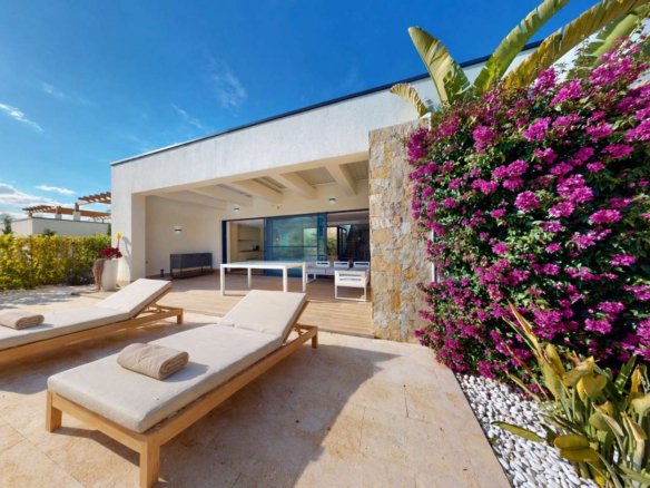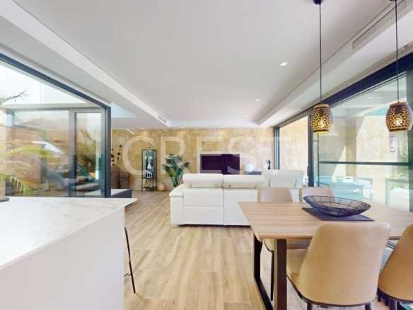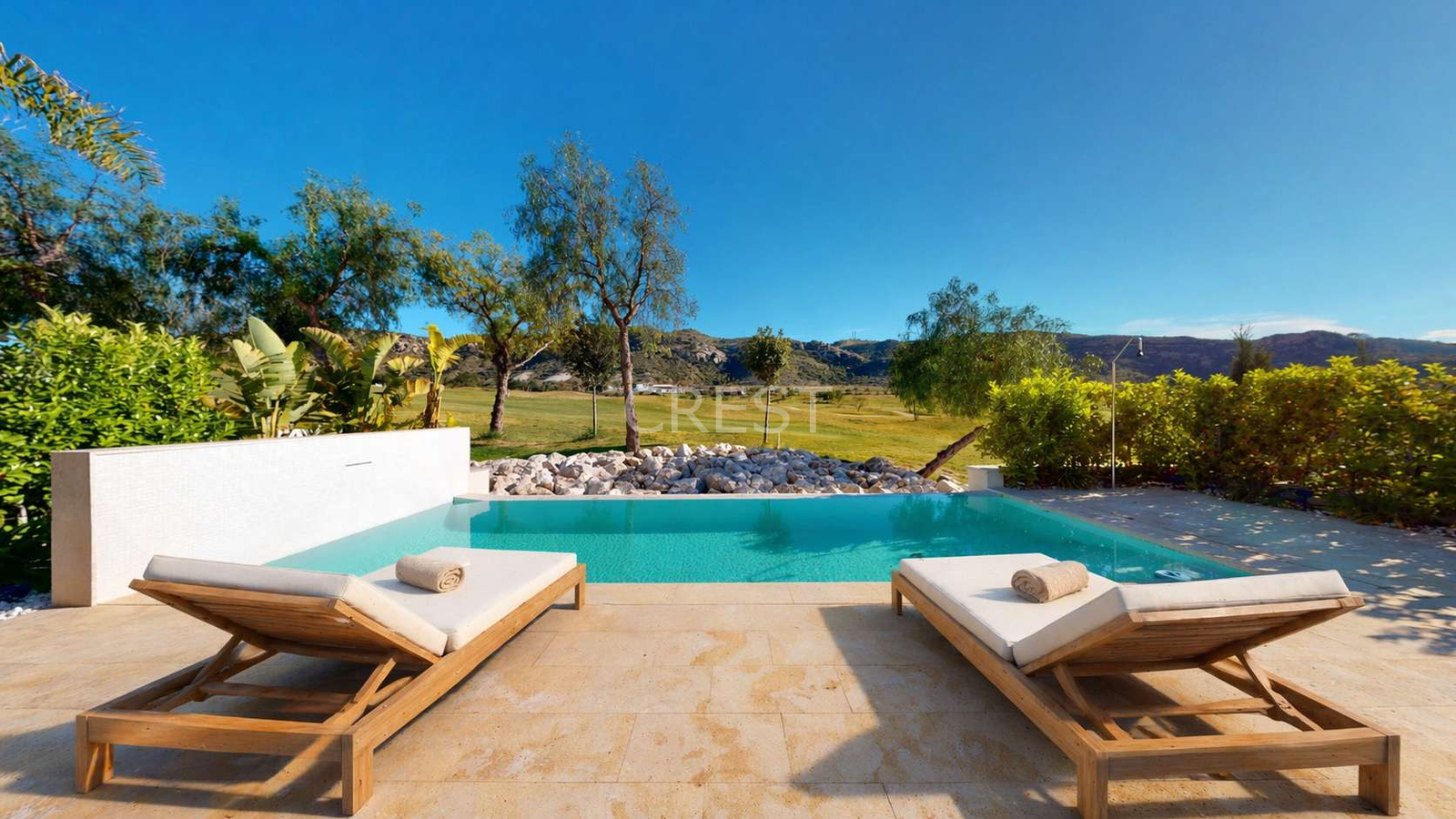 This stylish property features 3 bedrooms and 3 modern bathrooms and was designed with comfort, light and space as priorities. The villa offers several terraces, a sunny solarium and a beautiful garden with a private swimming pool, ideal for enjoying Mediterranean outdoor living all year round. Thanks to its frontline golf position, you will enjoy open green views and an exceptionally peaceful living environment every day.