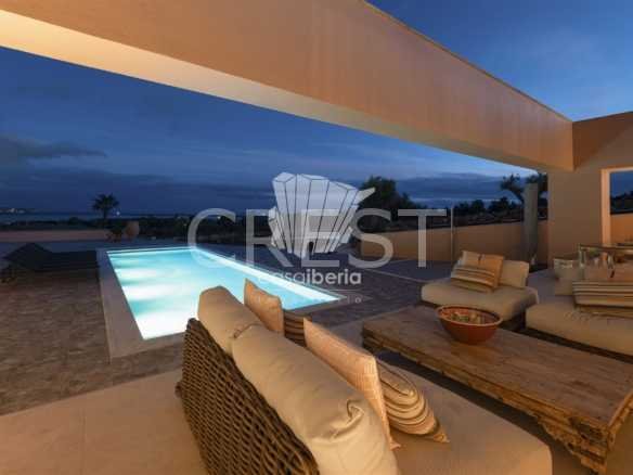 Surrounded by Mediterranean gardens and large terraces, the villa also includes two panoramic rooftop terraces, perfect for enjoying spectacular sunrises and sunsets and uninterrupted coastal views.