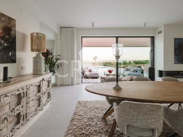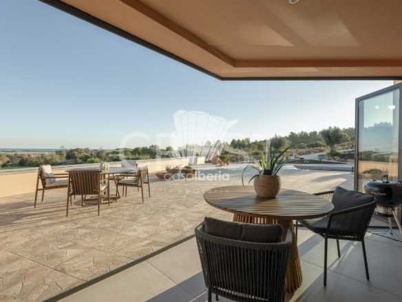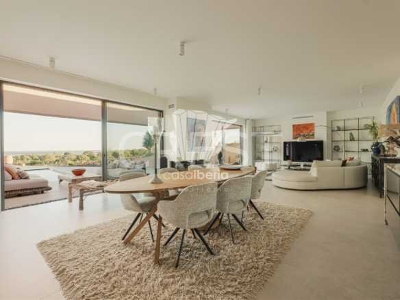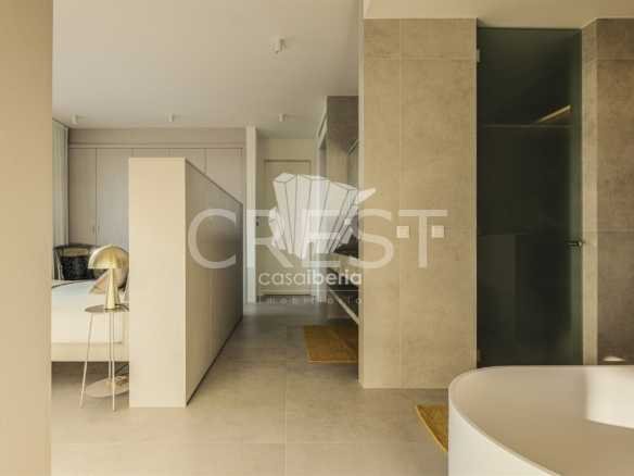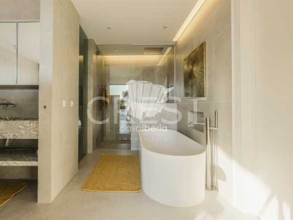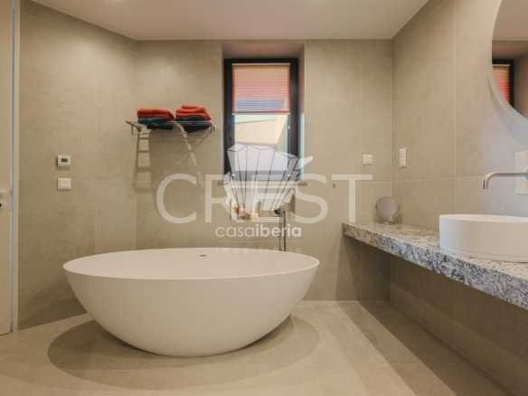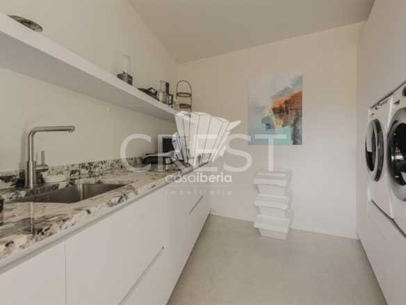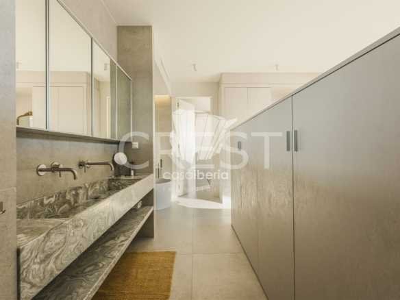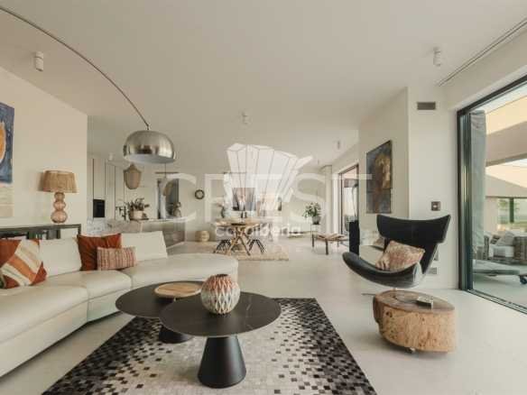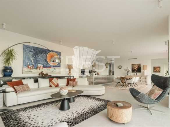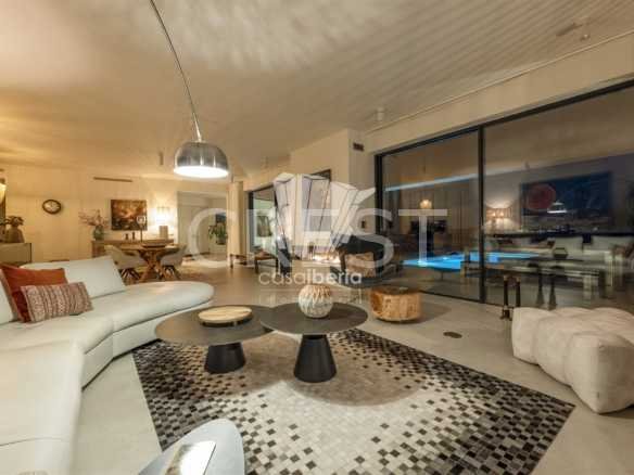 Designed with a focus on comfort and sophistication, the home includes four elegant en-suite bedrooms and exquisitely appointed living areas, flooded with natural light thanks to large panoramic windows and impressive 3-meter ceilings. A 14-meter heated saltwater pool, high-quality finishes, underfloor heating, integrated air conditioning and advanced solar systems with A+ energy rating guarantee luxury and efficiency.