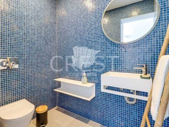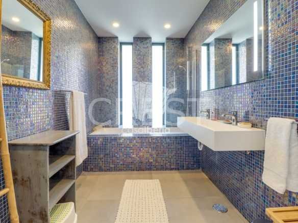 On the ground floor, it is welcomed by an elegant entrance hall that gives access to a large living and dining room in open space, with direct connection to a magnificent outdoor terrace with infinity pool, the ideal setting for relaxing moments and family conviviality. The fully equipped kitchen, with central island, combines functionality and design. This floor also includes laundry, two bedrooms with connection to the terrace and a full bathroom and a service bathroom.