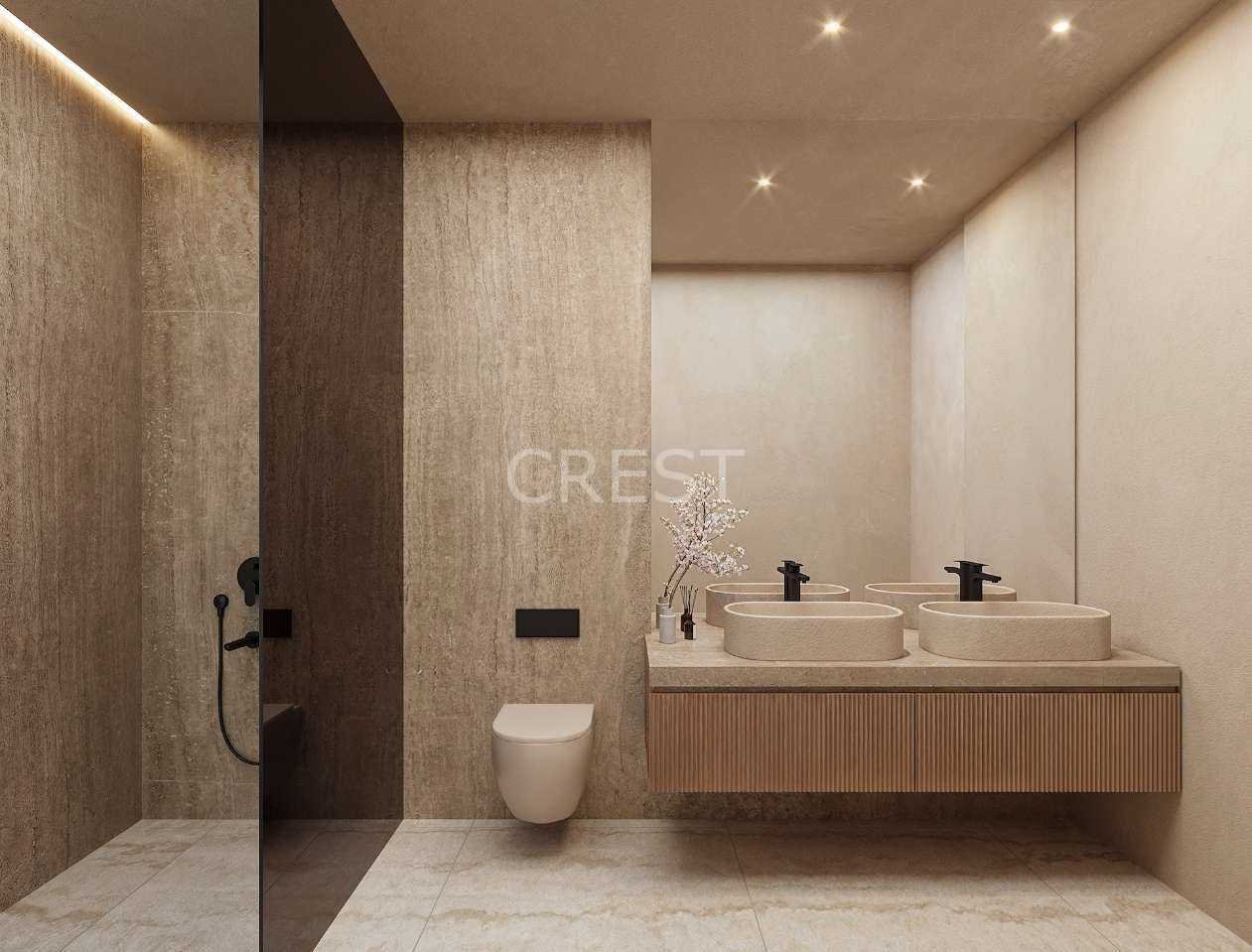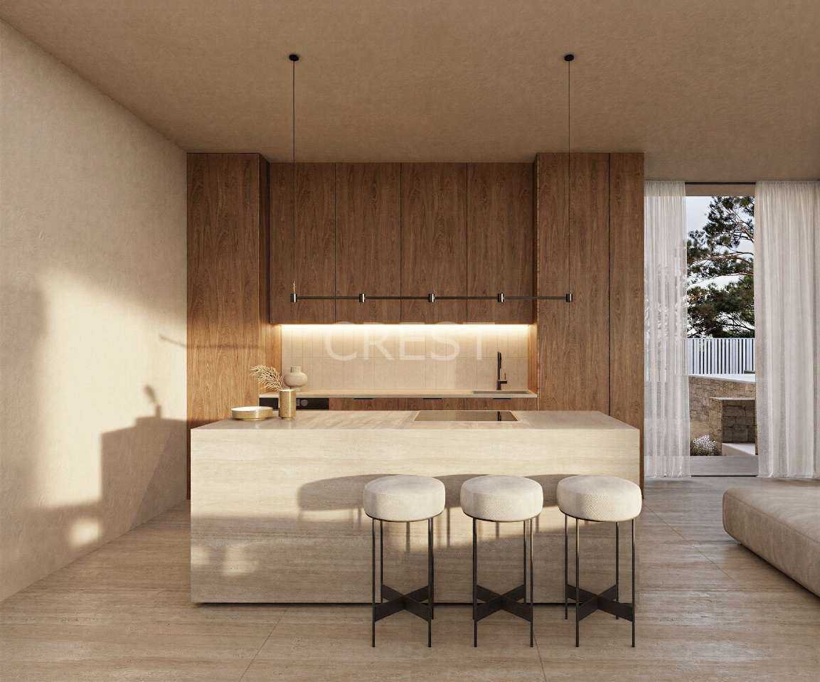 Natural materials such as natural stone and wood are harmoniously combined with soft, neutral tones. Large windows provide an abundance of natural light and create a seamless connection between indoor and outdoor living, with impressive sea views.