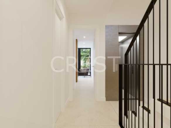 This new phase of extraordinary villas enjoys stunning views over the golf course. The groundfloor living area comprises a bright living room with fully equipped kitchen and separate cloakroom. Enjoy the part sun-drenched part shaded terrace and, of course, your own good-sized swimming pool. Furthermore, the villa has 3 bedrooms and 2 bathrooms. From the master bedroom, there is a terrace offering phenomenal views over the golf course as well as from the solarium. In the spacious basement, you can park 2 cars, there are 2 storage rooms and a multipurpose room that you can design to your own taste (office, fitness, home cinema, guest room,…) with direct access to an English garden. There is a possibility of installing a lift in the property at extra cost.