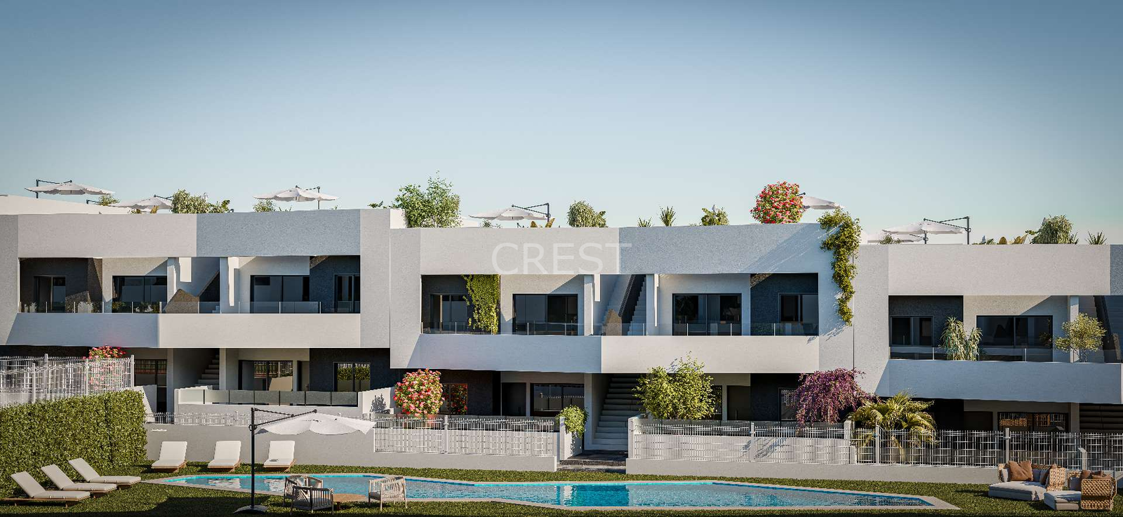 In this attractive setting, we are pleased to present a beautiful residential development featuring modern apartments, perfect for permanent living or as a sunny second home. The apartments offer 2 or 3 bedrooms and 2 fully equipped bathrooms. Each home is designed with a focus on comfort, natural light, and outdoor space. The spacious terraces provide the perfect place to enjoy breakfast in the sun or relax in the evening with a glass of wine.