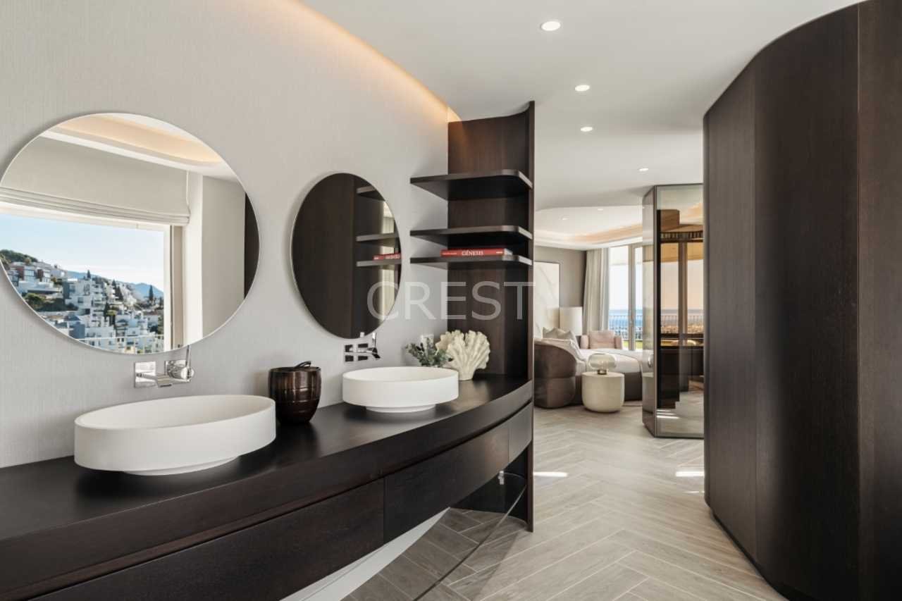 El apartamento, con una superficie total de 663 m² y una parcela privada de 192 m², presenta un diseño de planta abierta, ventanas del suelo al techo y puertas de cristal con vistas impresionantes. Dispone de un salón amplio conectado a grandes terrazas, comedor junto a una cocina elegante con accesorios de alta calidad, 3 dormitorios en suite con baños privados, un aseo para invitados, trastero y 2 plazas de aparcamiento en el garaje. La terraza de 232 m² ofrece vistas al mar y puestas de sol del Mediterráneo.