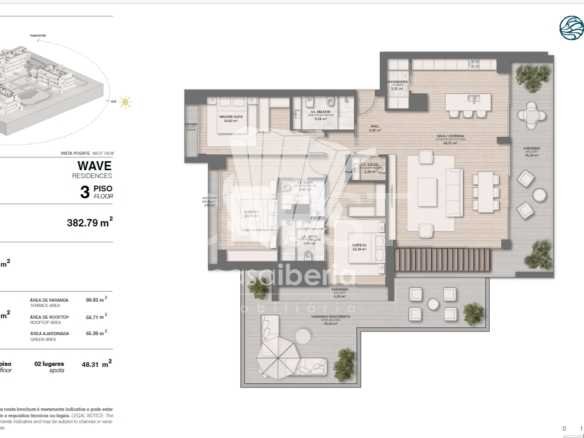 Sky Residences (Wave) – Penthouses with spacious interior areas and exclusive rooftops with private pools. These luxury residences are ideal for those seeking a sophisticated lifestyle, offering panoramic sea views and entertainment and relaxation areas. Sky Residences combine elegance and exclusivity, providing a unique and elevated living experience.