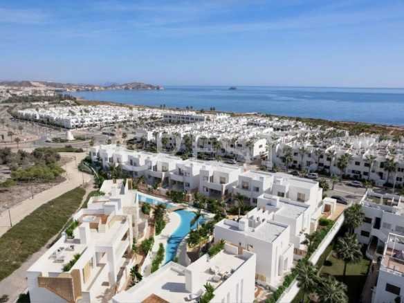 Just 400 metres from the golden sands of San Juan de los Terreros, Almería, this new residential enclave invites you to experience the Mediterranean lifestyle at its finest. Surrounded by open, sun-drenched landscapes, it offers a privileged location within walking distance of the sea and all daily conveniences. Here, you’ll find a vibrant community with a wide range of amenities including leisure areas, a school, health centre, supermarkets, local shops and even a golf course — everything designed to make life easy and enjoyable.