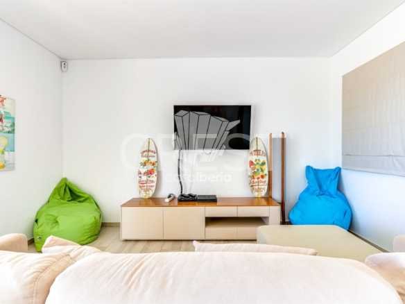 For leisure moments, the villa has a game room, ideal for entertaining friends and family. Outside, the spacious terraces provide panoramic views and are perfect for relaxing or socializing.
