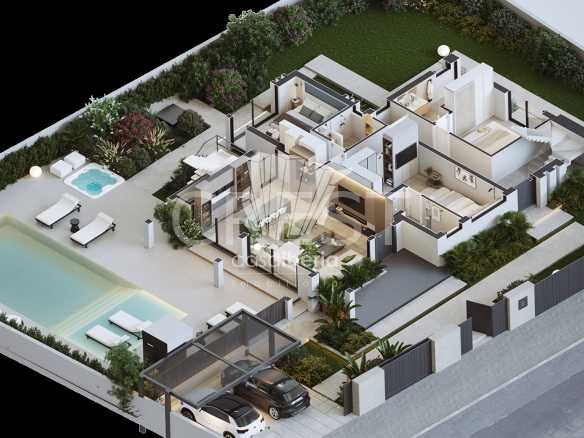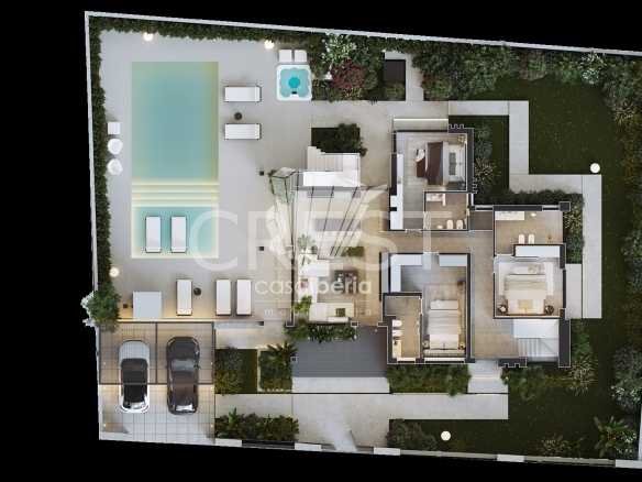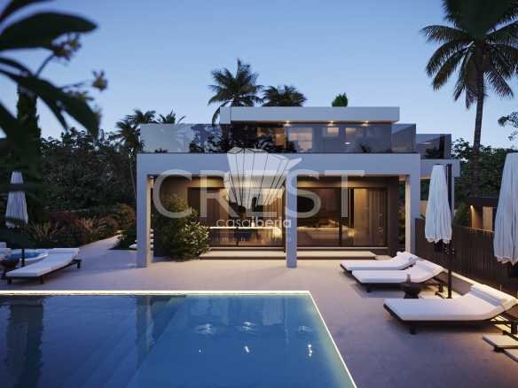 This villa has been designed with high-quality materials, offering spacious and bright areas that ensure an airy and comfortable atmosphere. Its interior has been created to provide a welcoming environment, standing out for its refined lighting. At night, the lights and LEDs give the house a striking and sophisticated ambiance. For added comfort, the villa features underfloor heating and air conditioning, ensuring a pleasant environment throughout the year.