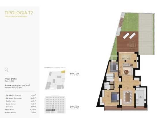 The property comprises hall, 2 suites with balconies, bathroom, kitchen, dining room, living room, balcony, 1 parking place in garage and a spectacular terrace with 112 m2. Well situated, it is 120m from the Market 31 de Janeiro, 170m from Picoas Metro Station, 350m from Atrium Saldanha, 400m from Saldanha Residence Shopping Centre, and surrounded by commerce, services, transport and access.