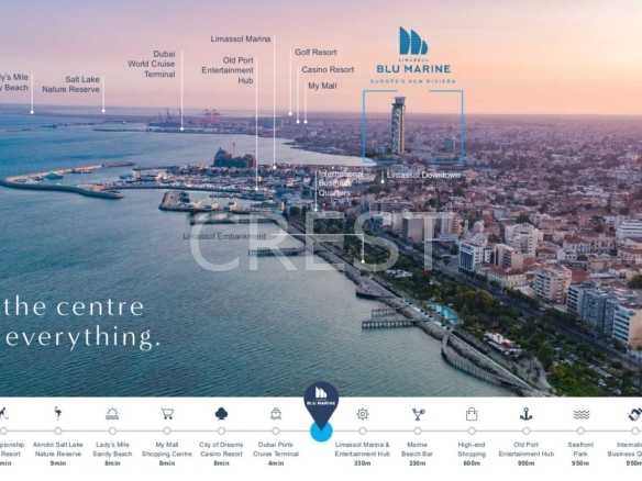 is a stunning property located in the Poseidon Tower of Limassol Blu Marine, an exclusive waterfront development located in the new Center of Limassol, Cyprus. It is situated close to Limassol Marina and the old town shopping and business center, making it a convenient and desirable location.