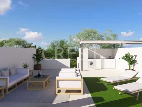 The homes offer 2 bedrooms and 2 bathrooms, a fully fitted kitchen and a bright, open-plan living area with direct access to the terrace and swimming pool. Everything is on one level, providing extra comfort and a practical layout.