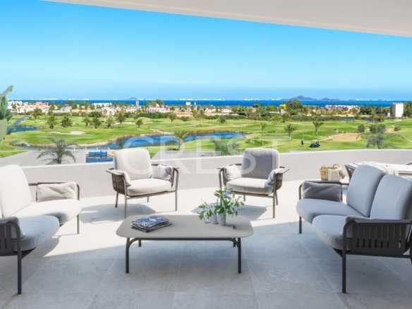 This residencial is located in Los Alcázares an exceptional area on the Costa Cálida at only 25 minutes from Murcia airport and 55 min from Alicante airport. The area is connected through highway with the cities of Cartagena, Murcia and Alicante and the rest of the beaches of the Costa Cálida and the Costa Blanca. The residential is composed of 16 apartments and 6 exclusive villas combining modern design, quality and functionality. The unbeatable location offers amazing views to golf and the Mar Menor sea.