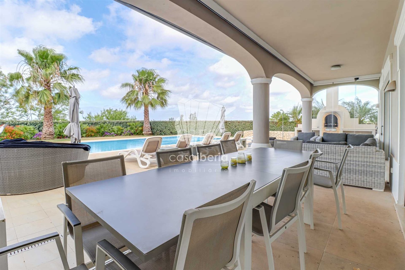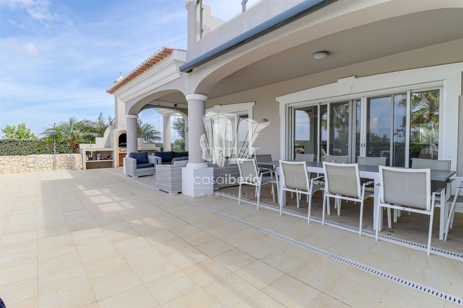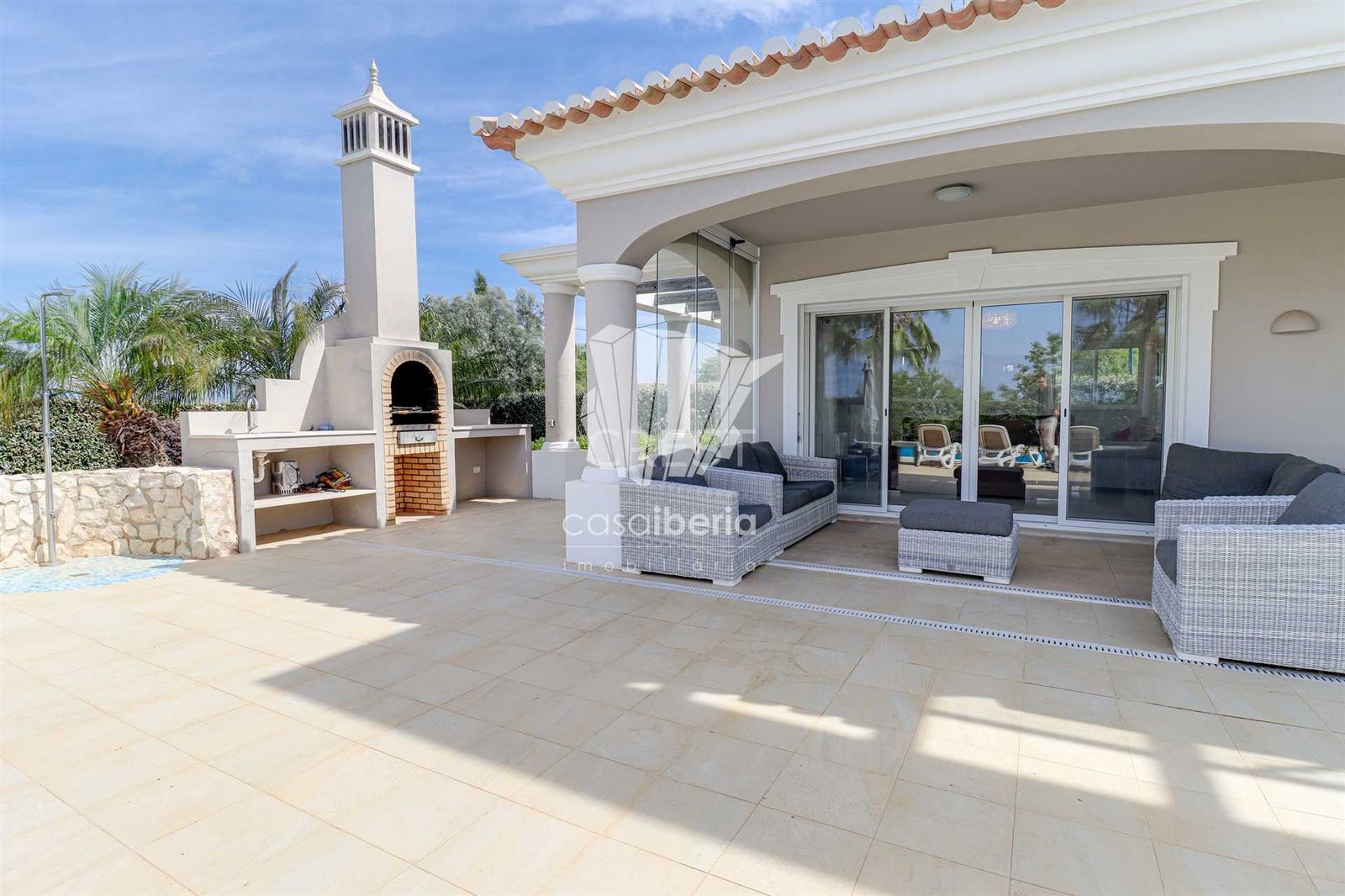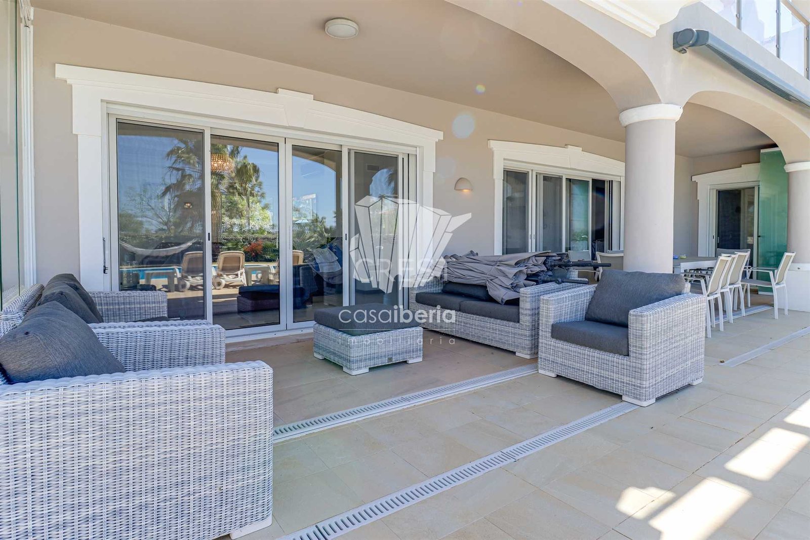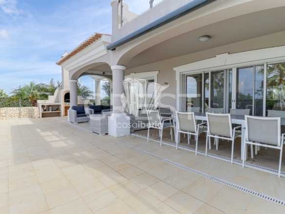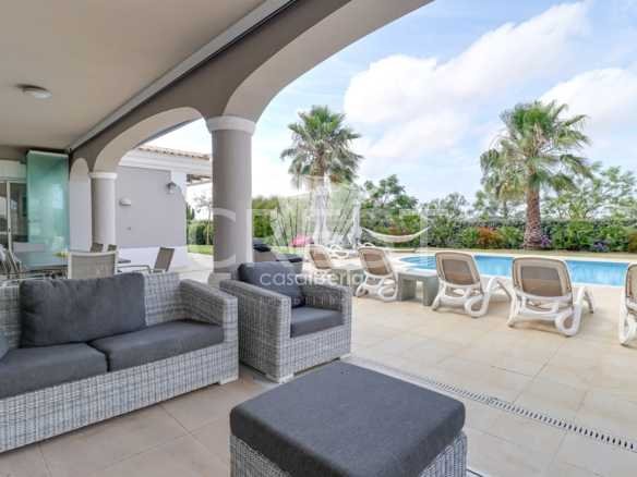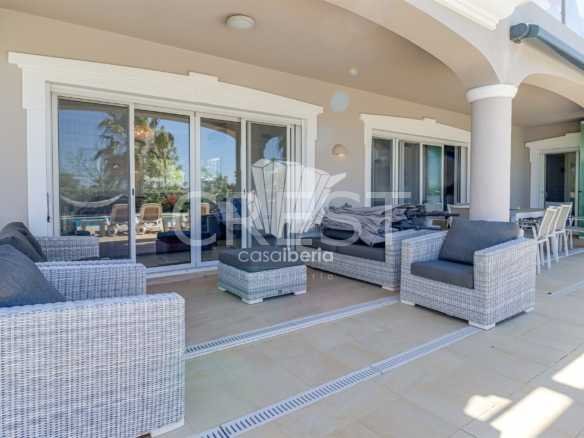Next to the window doors is a large covered patio, equipped with folding doors, which offers an indoor-outdoor experience to enjoy this villa all year round in idyllic conditions.