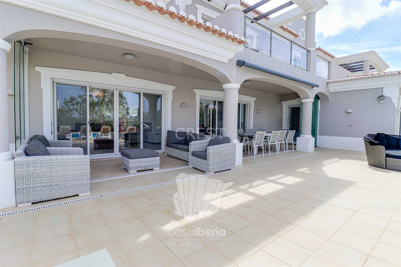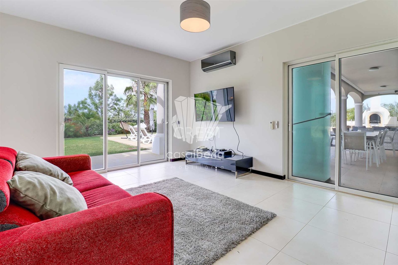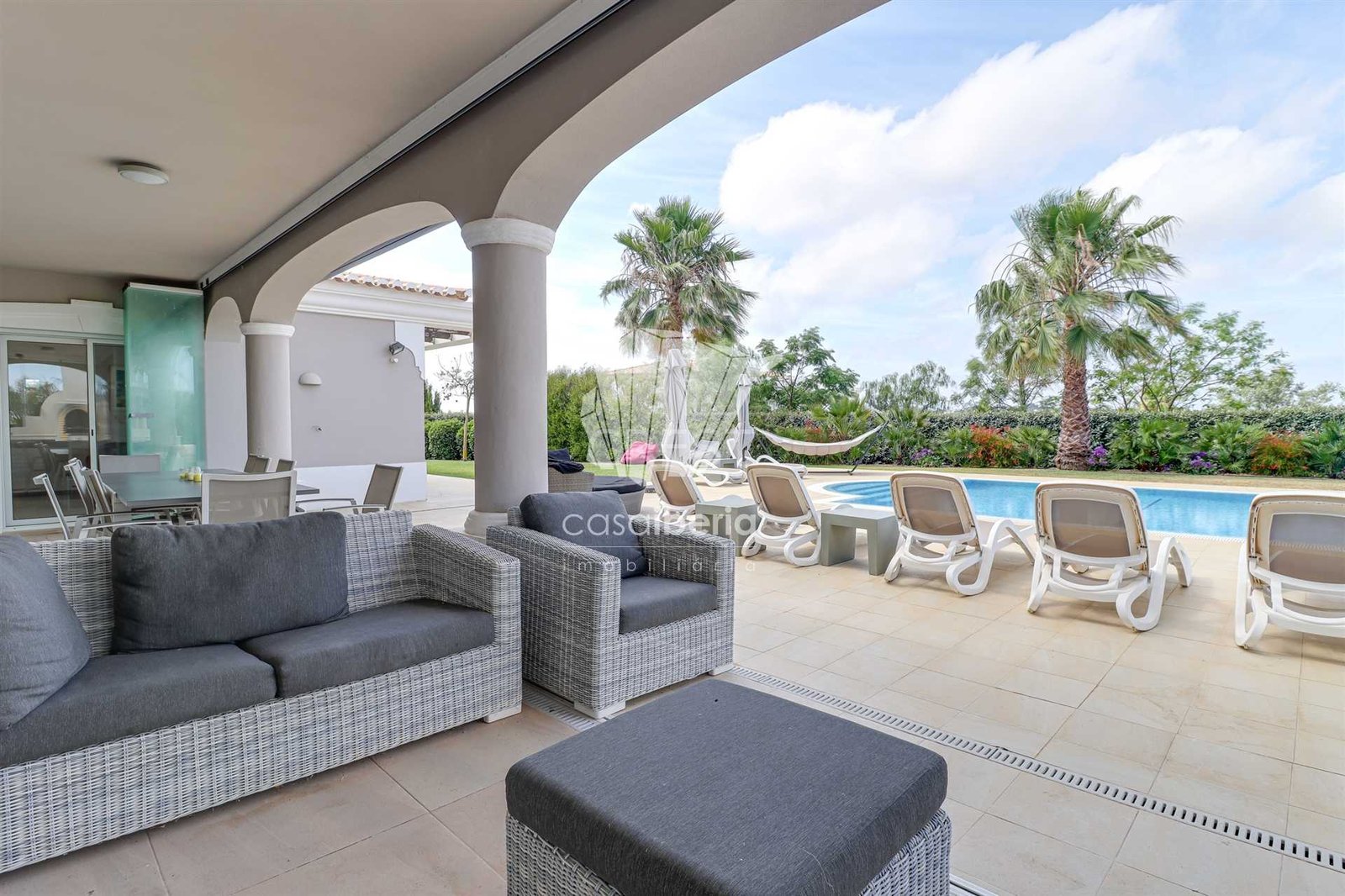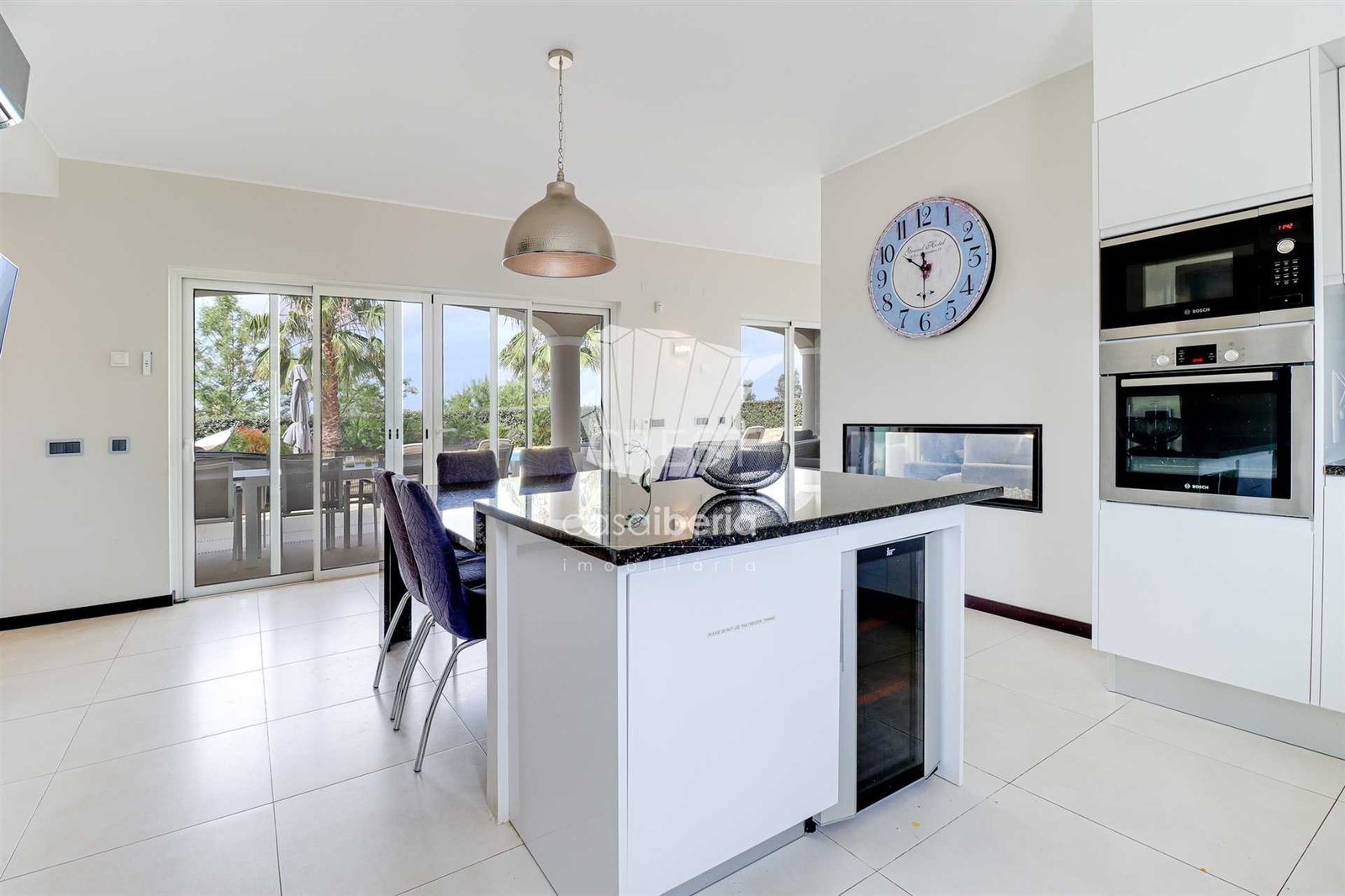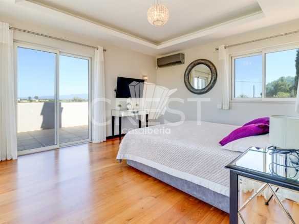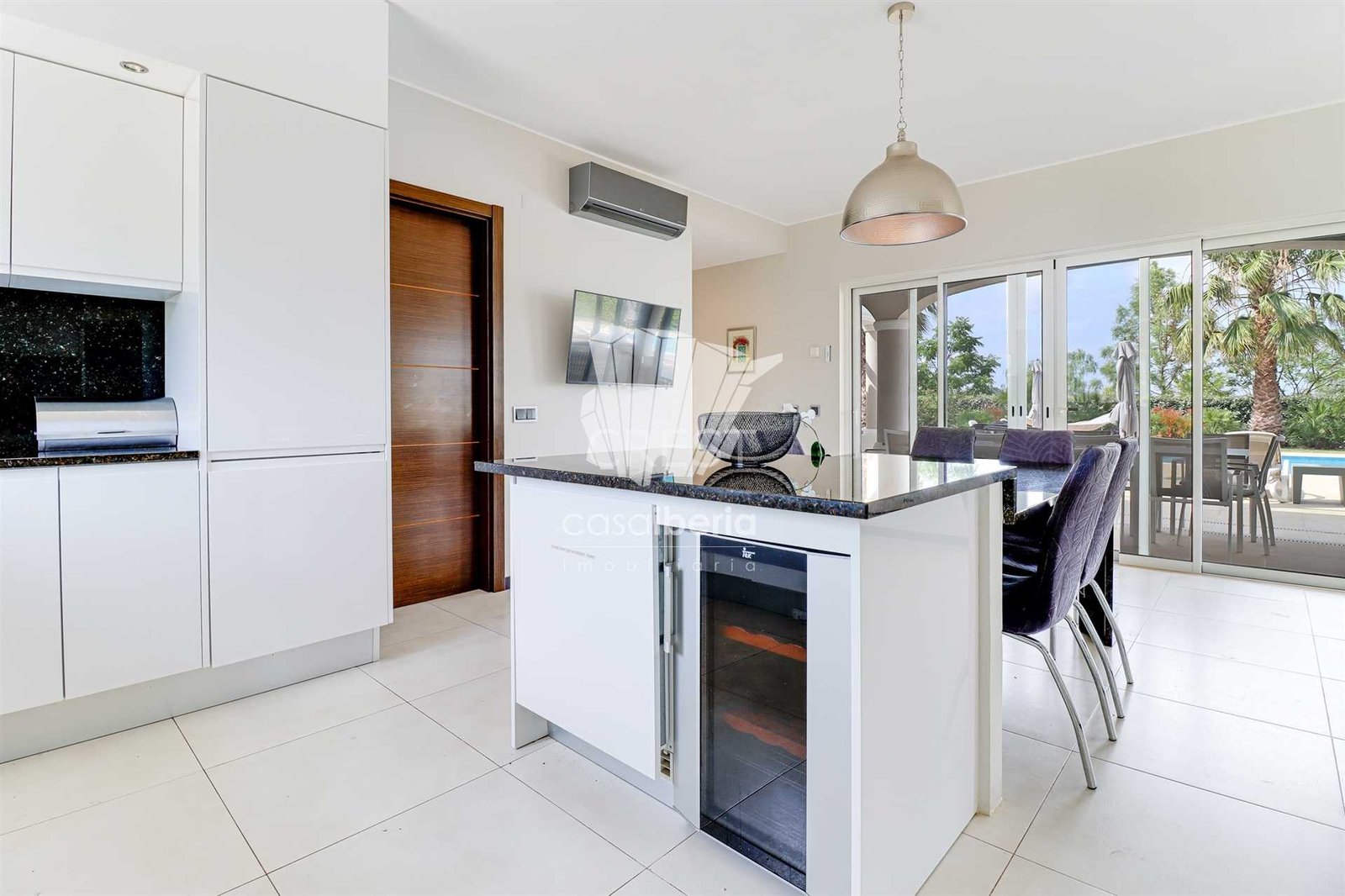 Next to the window doors is a large covered patio, equipped with folding doors, which offers an indoor-outdoor experience to enjoy this villa all year round in idyllic conditions.
