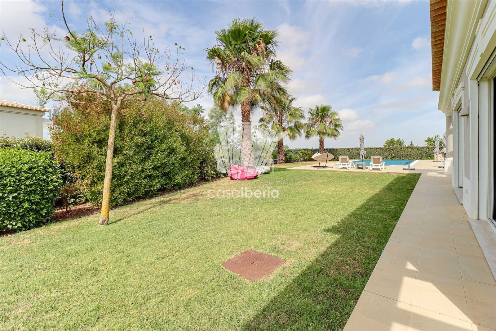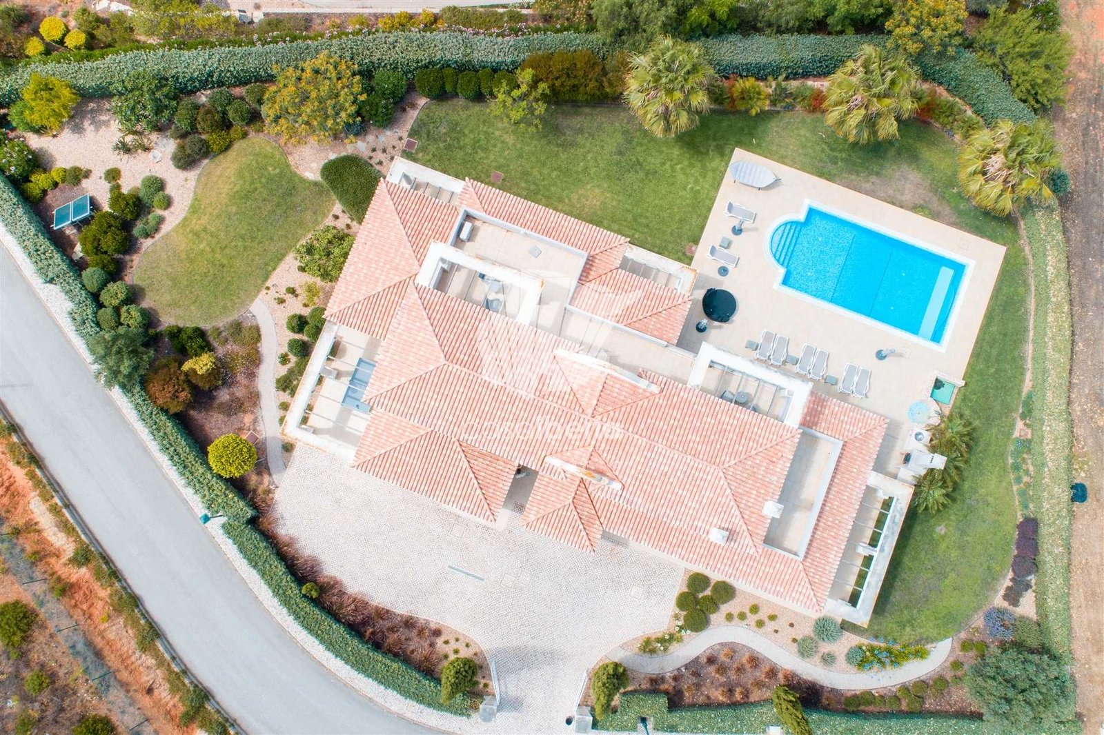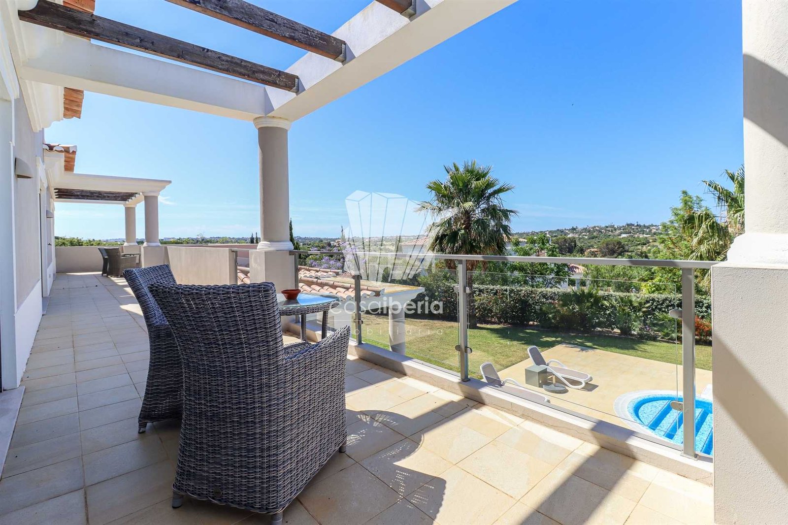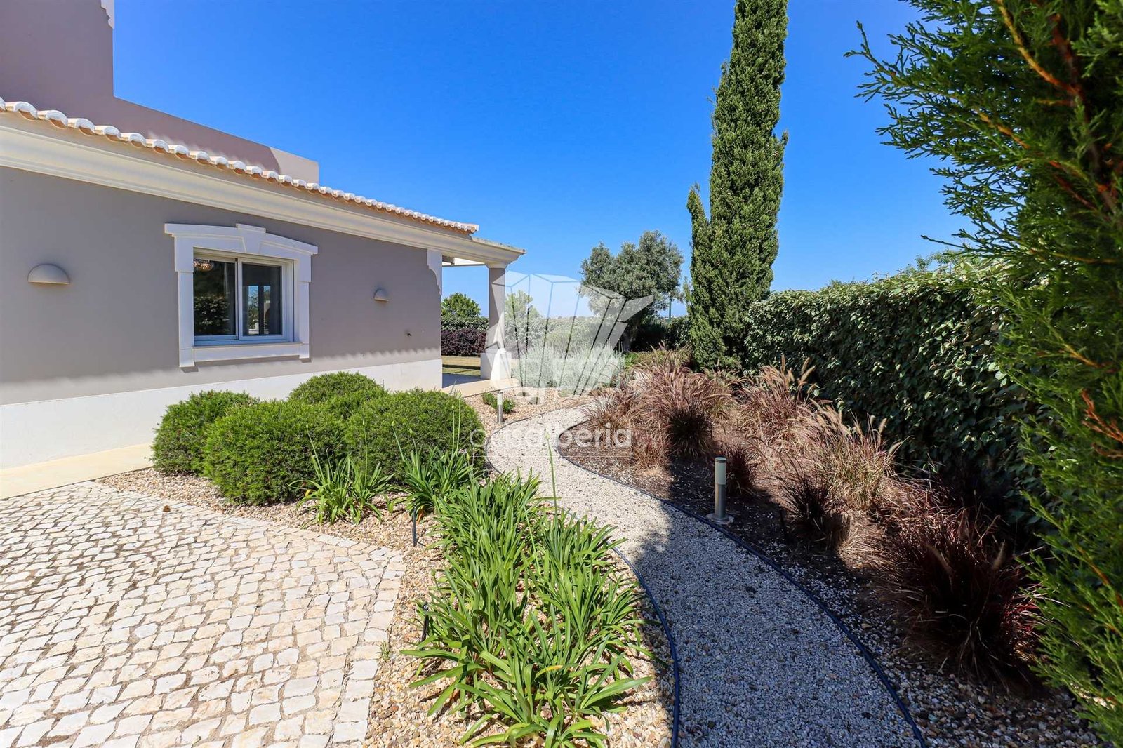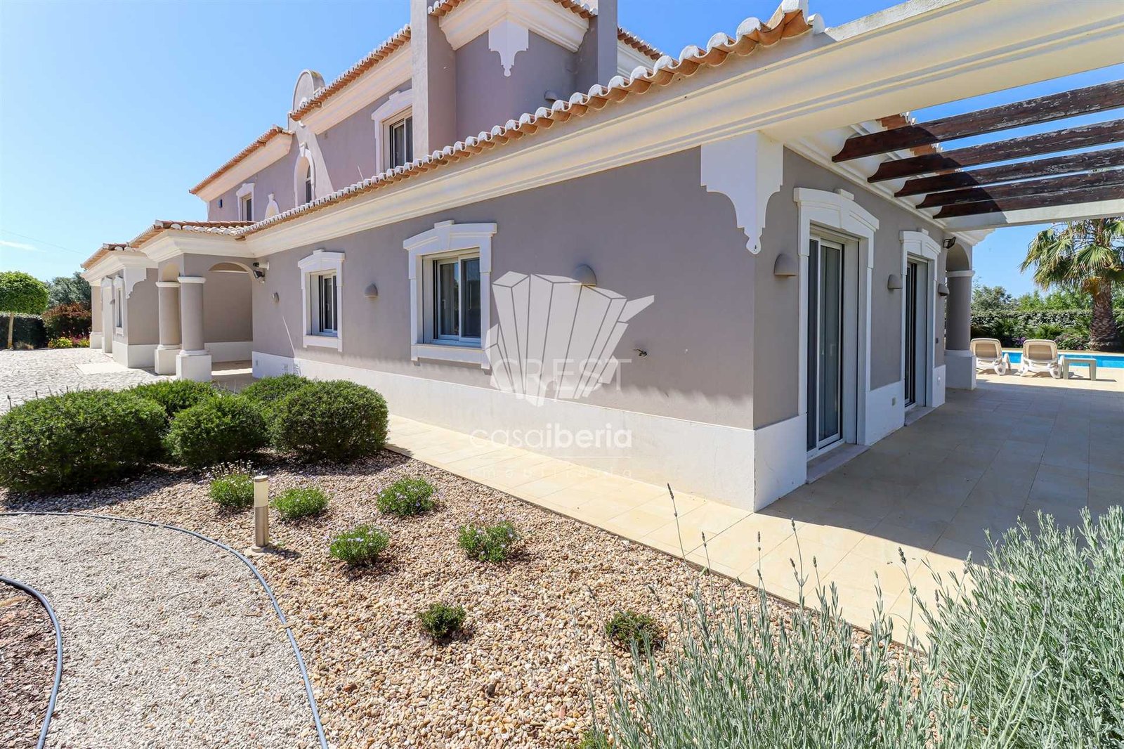 The villa is surrounded by a beautifully landscaped garden with distinct areas. The grounds of 1750 m2 offer unique privacy and tranquillity in which to relax.