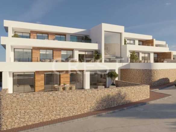 This modern apartment complex in Cumbre del Sol is the ideal choice for those looking for a stylish seaside residence, surrounded by nature, tranquility, and high-quality facilities offering year-round comfort. The project stands out for its contemporary, functional, and sustainable design, with each building comprising only a limited number of homes, ensuring maximum privacy and a peaceful living environment.