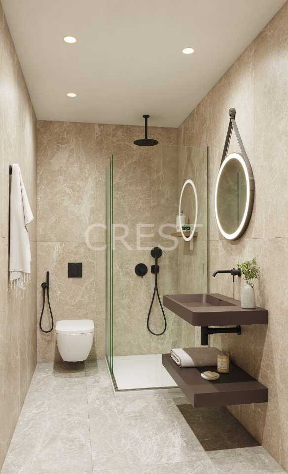 Choose from 2 or 3-bedroom layouts, with options for ground floor residences featuring private gardens and patios, or upper-floor homes with spacious solariums, each complete with a pre-installation for a jacuzzi, a pergola, a shower, a motorized shutter and fully equipped outdoor kitchen – ideal for relaxing or entertaining under the sun.Inside, you’ll find bright, open-plan living areas finished in natural wood and soft neutral tones, creating a warm and sophisticated ambiance. The master bedrooms offer direct access to private terraces, allowing you to enjoy the gentle Mediterranean breeze in total privacy.