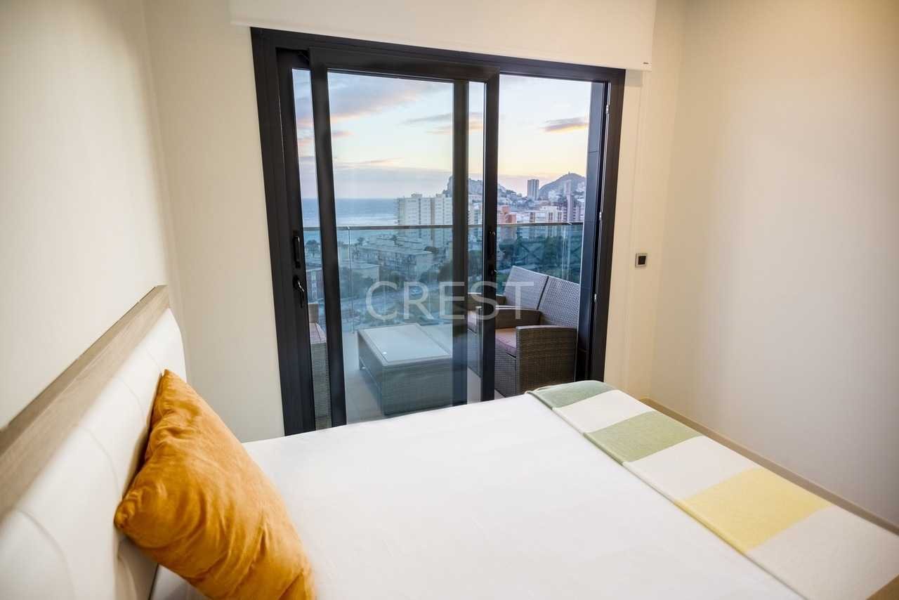 Located in the Cala de Benidorm, the quietest and most demanded area, is this newly built apartment, privileged views of the sea and the most modern and complete urbanization of the entire city. 13,000 sqm of common areas divided into 3 swimming pools, 3 Jacuzzis, chill out lounge areas, 2 bar bars, one of them integrated into the pool, sauna, heated swimming pool adapted to swimming, paddle tennis, tennis, Wi-Fi rooms and reading, plus a small movie theater.