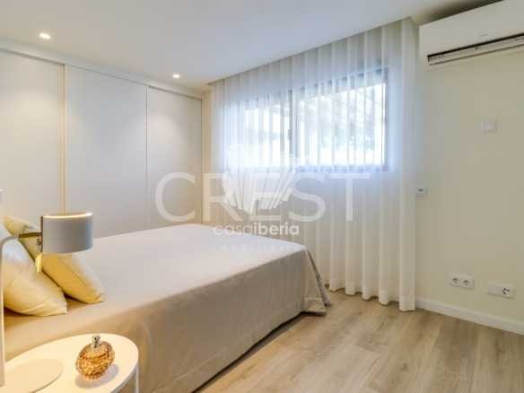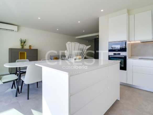 The kitchen, fully equipped with built-in appliances from the Bosch brand, has a contemporary design, with minimalist lines and neutral tones, and is in an open space concept, in perfect harmony with the common room.