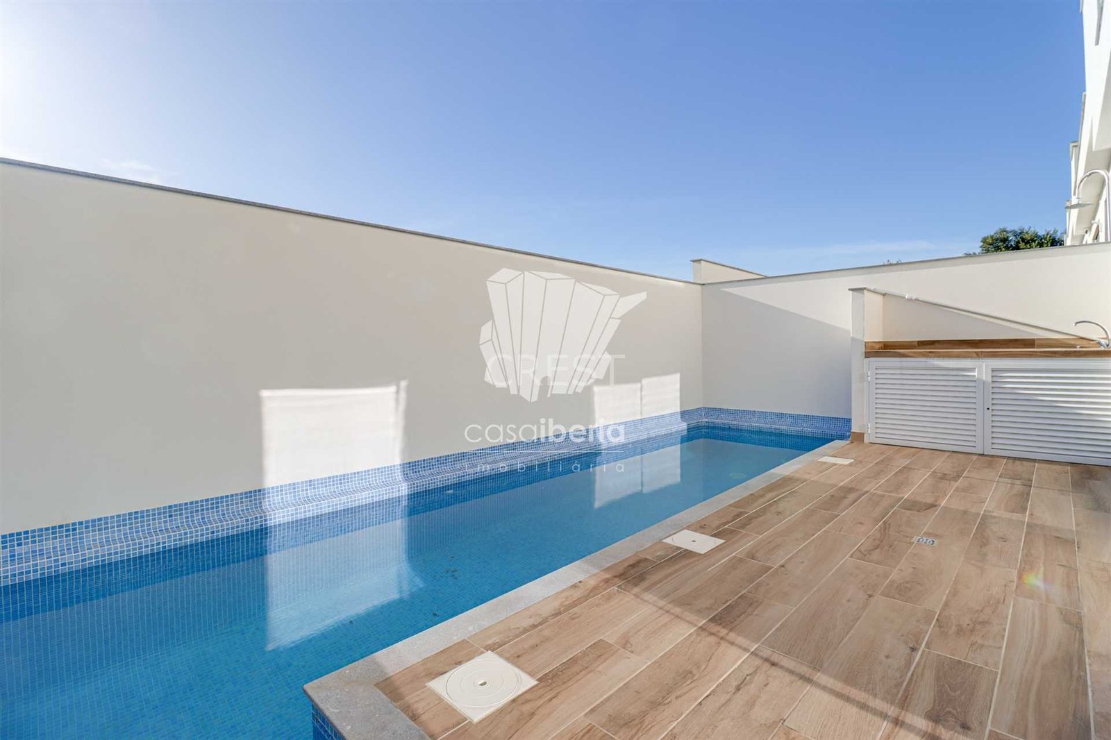 On the ground floor you´ll find an open-plan living room with a kitchen, totalling 43m2, which crosses the entire ground floor of the villa, with the living room having direct access to the terrace with swimming pool, creating a great social area. There is also a bedroom and a full bathroom.