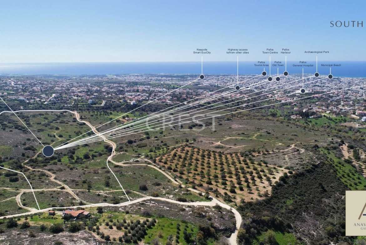 This plot is located in Anavargos , a beautiful Village just 10 minutes’ drive to the Paphos Tourist Area and a 5 minute drive to Leptos Kamares Village. These plots are carefully sited so that residents enjoy breathtaking panoramic views of the sea and the Mediterranean countryside.