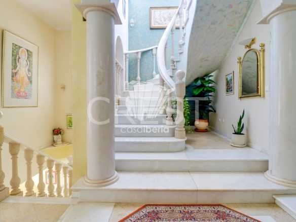 A spacious hall with soaring ceilings and a beautiful staircase leading to the upper level. A large, harmonious living room with fireplace and sea views opens directly onto the terrace and garden. The south-facing dining room offers a refined, light-filled setting. The fully equipped kitchen includes a pantry and separate laundry room .