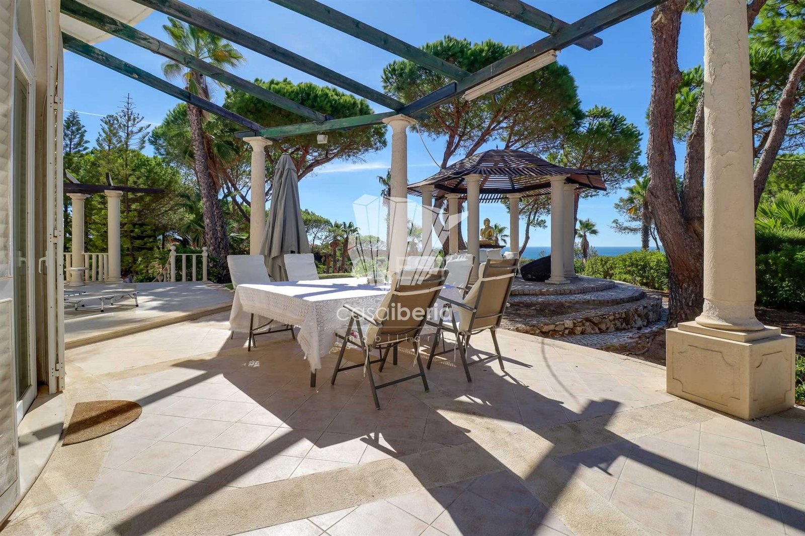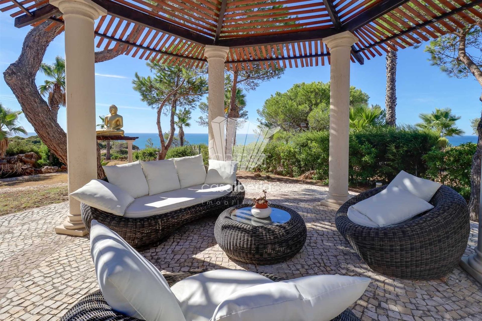 The beautifull landscaped garden incorporates calming water features, a pond fountains, that enhance the tranquil ambiance. Seaside seating areas are perfect for relaxing or socializing with family and friends.