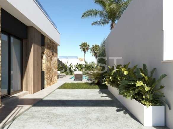 This modern L-shaped villa is designed to maximize comfort and functionality. From both the living room and master bedroom, you can enjoy beautiful views of your private swimming pool. The villa consists of a spacious living area, an open-plan kitchen with integrated appliances, three bedrooms, and two bathrooms, all conveniently distributed on one floor.