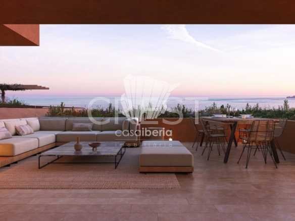 The flat is comprised of one bedroom, bathroom, and an open plan kitchen and living room with access to a semi covered terrace. It also includes two parking spaces in the garage and a storage space.
