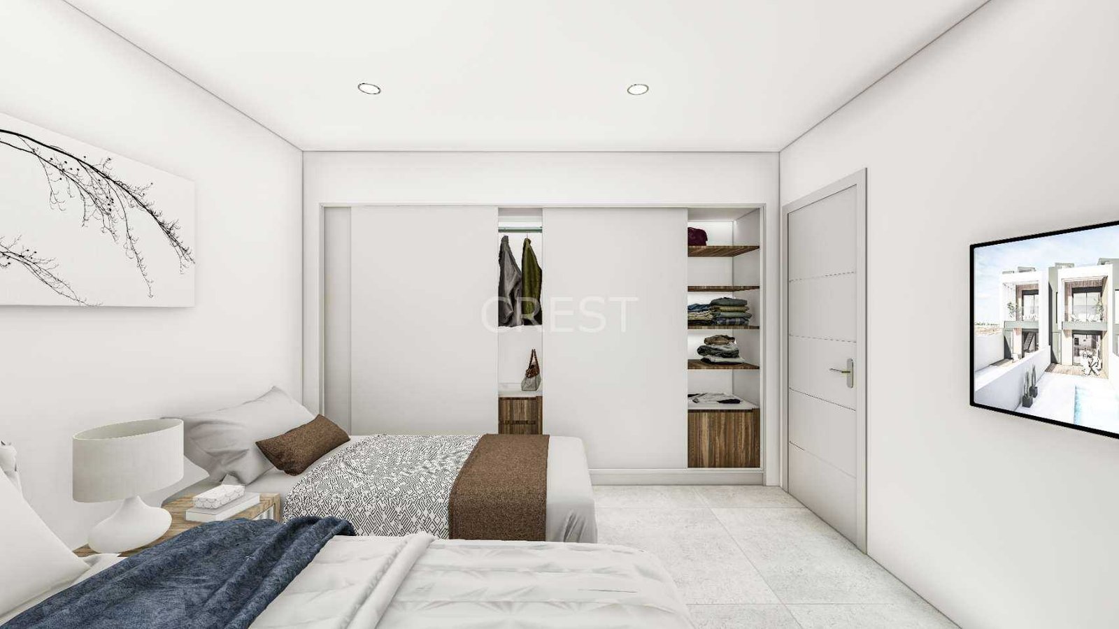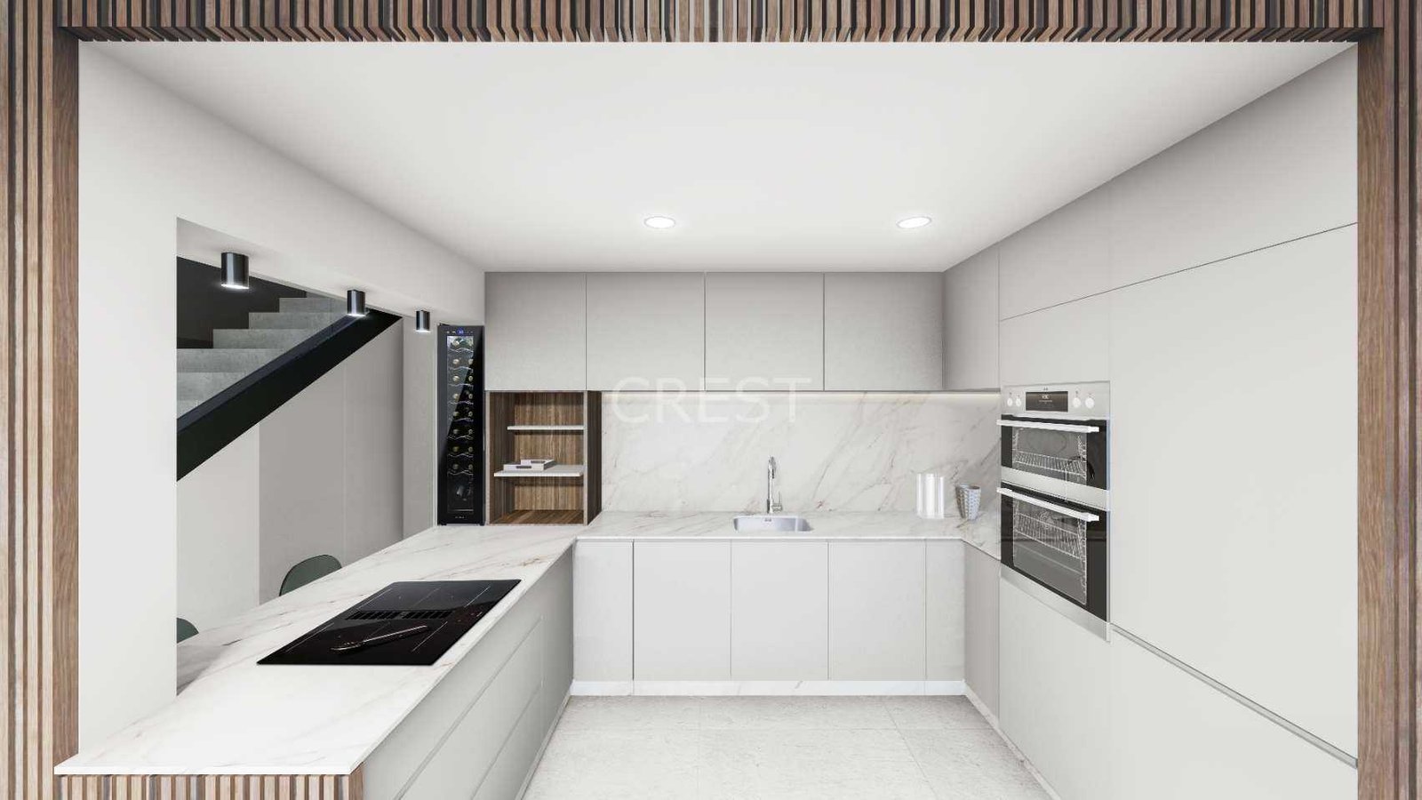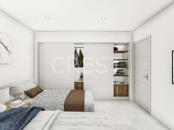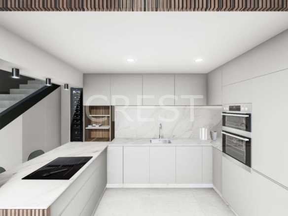 The interior embraces a contemporary open-plan concept, seamlessly connecting a fully equipped kitchen with the living and dining areas to create a bright, airy atmosphere. High-quality finishes and thoughtful features enhance the overall sense of luxury, from motorized blinds and PVC carpentry with low-emissivity glass to integrated wardrobes and pre-installation for ducted air conditioning. The kitchens are delivered fully furnished and include top-brand appliances such as an oven, microwave, fridge, extractor fan, dishwasher, and even a wine cooler.