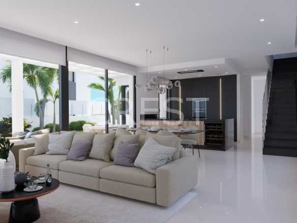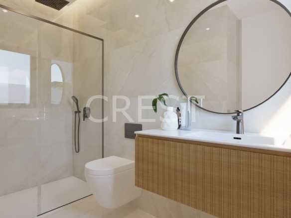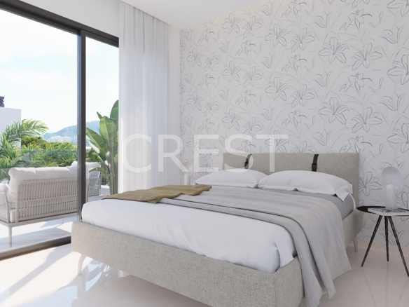 Each villa features a spacious layout with three bedrooms and three bathrooms, where large windows provide an abundance of natural light and panoramic views of the Mediterranean Sea and the surrounding landscape. The modern architecture and high-quality finishes ensure a luxurious living experience, perfectly blending functionality and aesthetics.