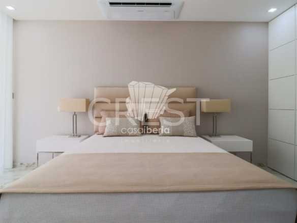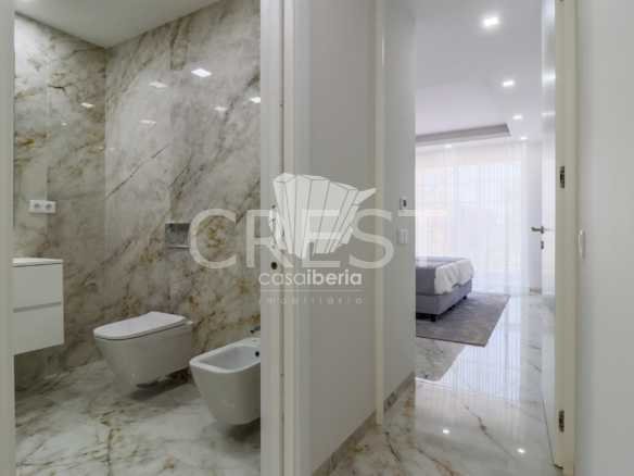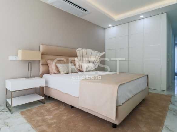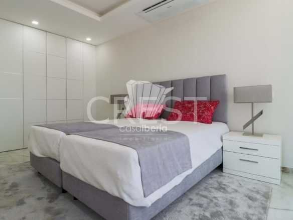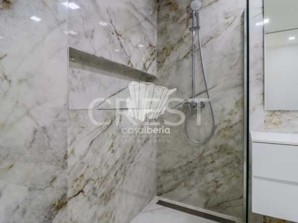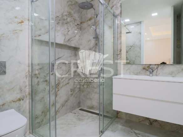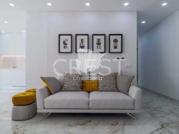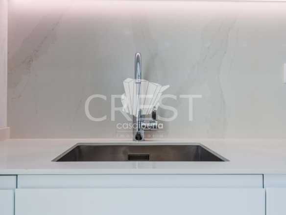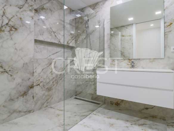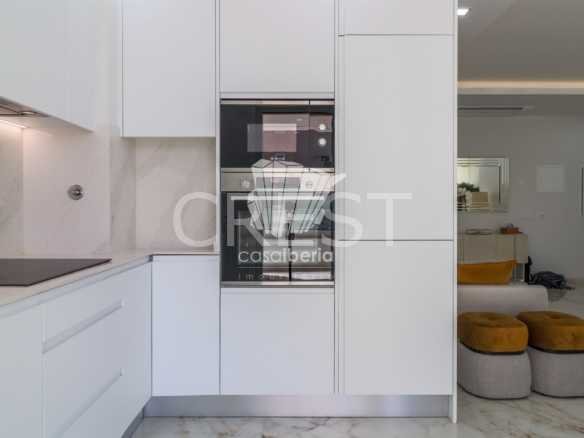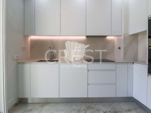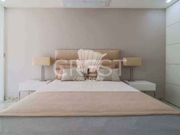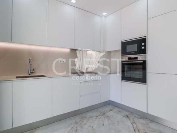 It comprises 2 bedrooms, one of them in suite, a fully equipped open space kitchen and living room that leads to a balcony with views over the city.