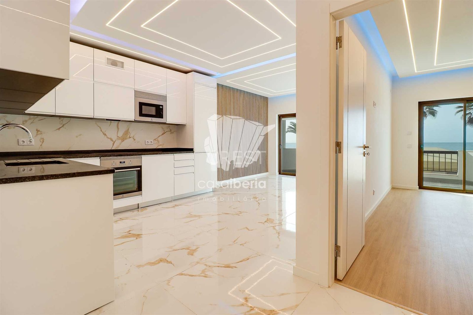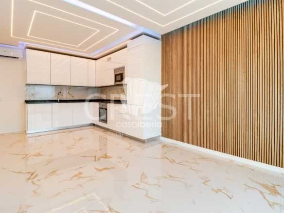 The modern kitchen, fully equipped, integrates harmoniously with the living room in open space, creating a bright, functional environment ideal for everyday life or to receive family and friends. The current design, combined with the excellent sun exposure, gives the space a feeling of spaciousness and elegance.