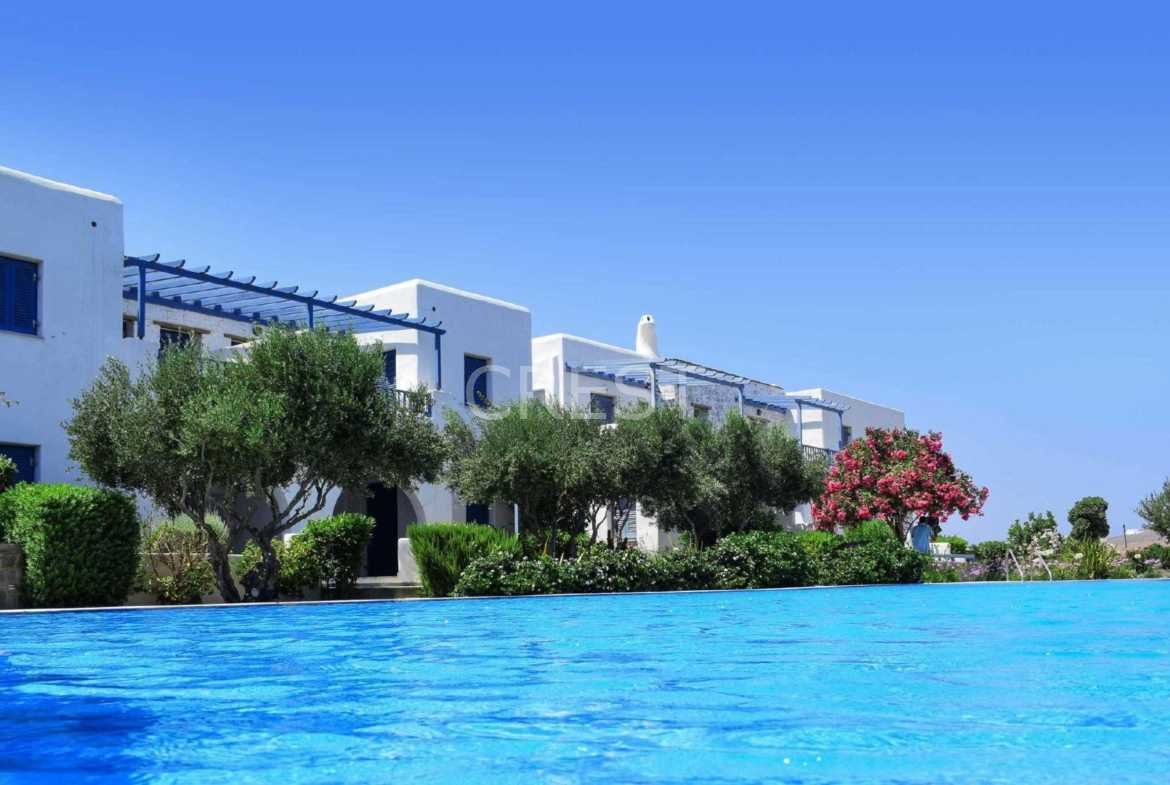 is a stunning property filled with natural light and offering breathtaking views of the Aegean Sea. Nestled within a traditional ‘Kyklades’ style development in the charming fishing village of Molos, this villa provides direct access to a communal swimming pool.