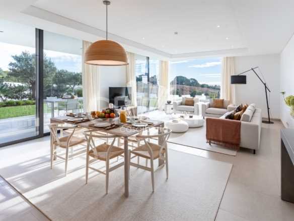 This flat consists of a kitchen, dining and living room with direct access to one of the balconies, 1 guest bathroom, and 2 suites with fitted wardrobes and direct access to the outside area. Situated in a private Golf Resort which also offers access to the Spa area, swimming pool and gym.